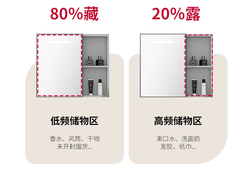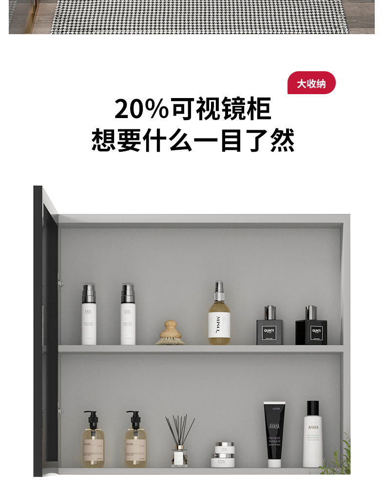 • 이중 인출식 메인 캐비닛 80cm 회색 슬레이트 + 거울 캐비닛