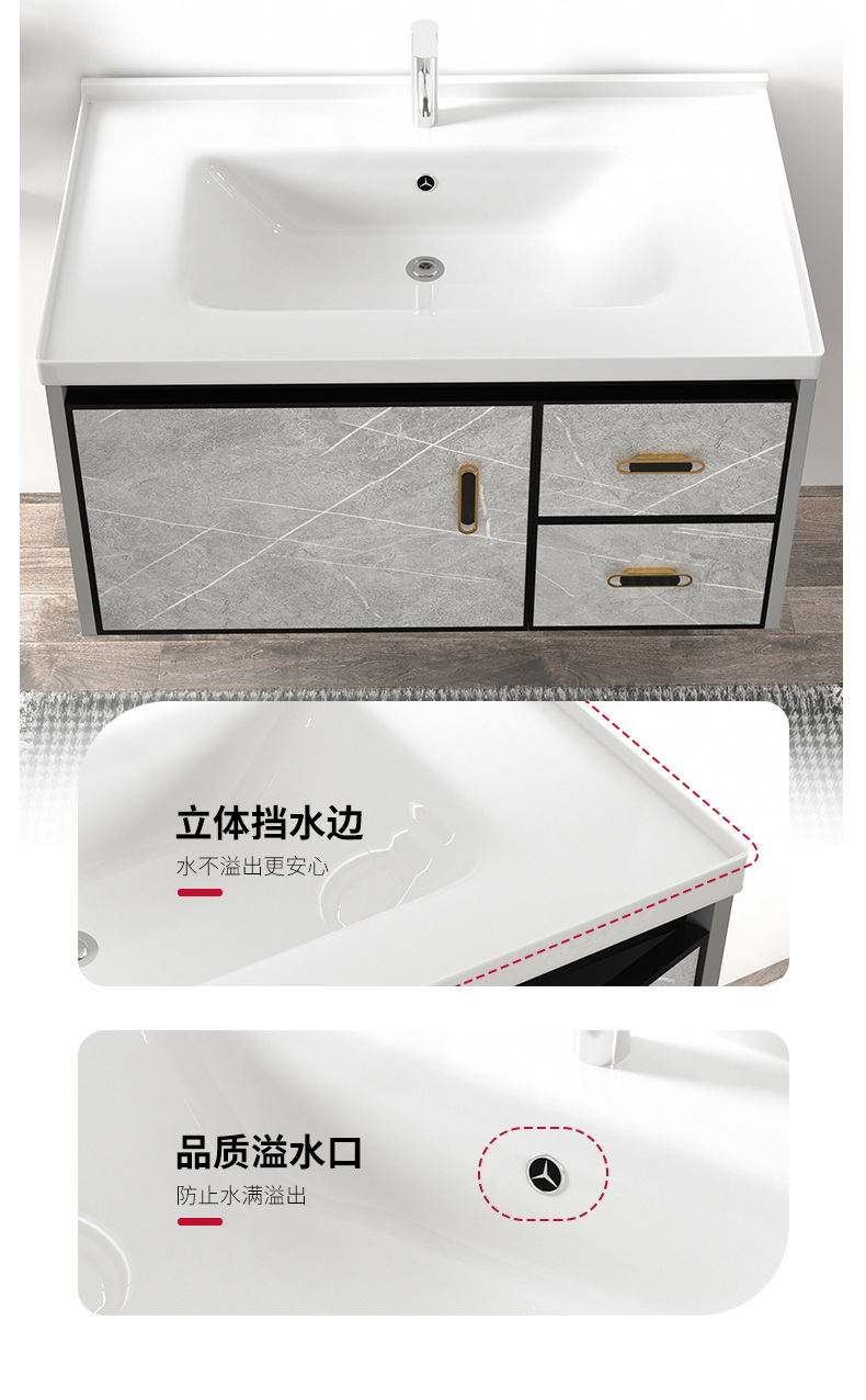 • 이중 인출식 메인 캐비닛 90cm 세라믹 세면대 + 거울 캐비닛