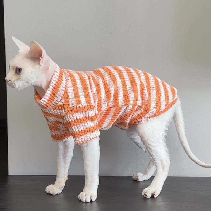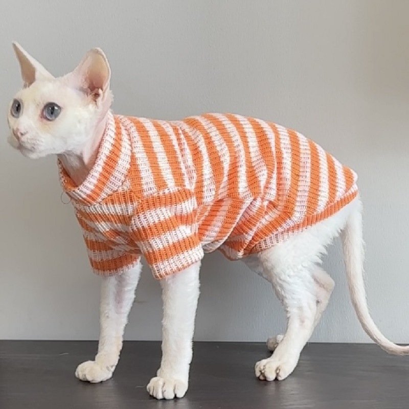 가을과 겨울 새로운 따뜻한 줄무늬 셔츠 모피 무료 고양이 옷 독일 애완 동물 고양이베이스 셔츠 니트 스웨터스토어 가기