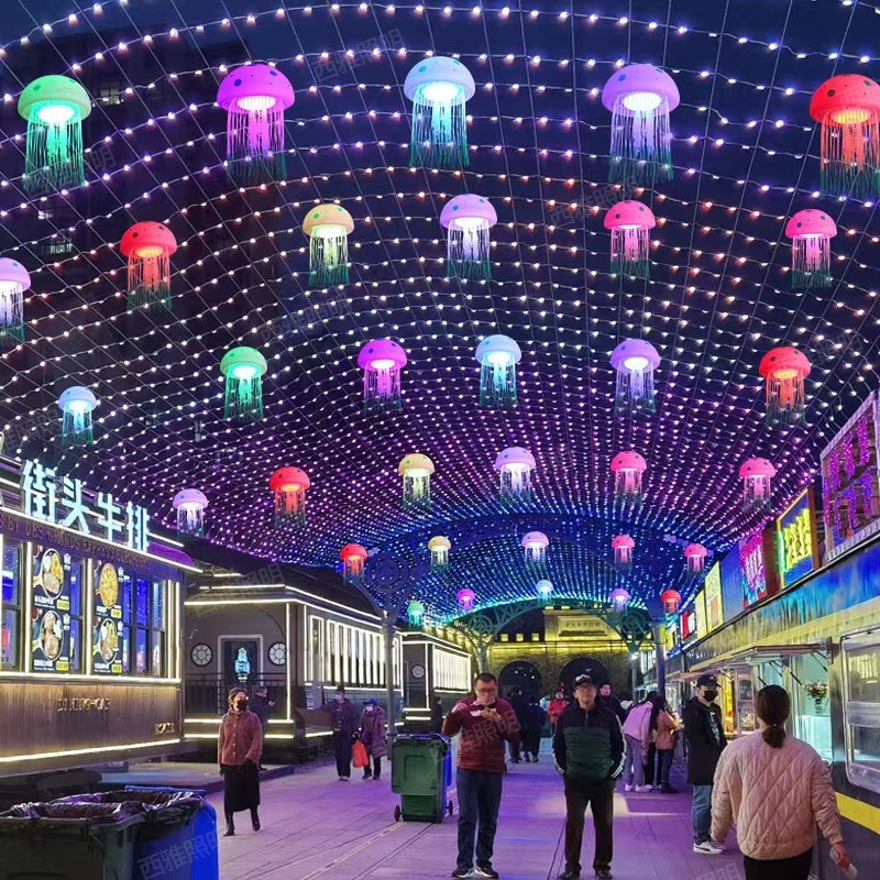 Led 빛나는 다채로운 해파리 모델링 램프 야외 방수 조경 조명 축제 나무 펜던트 장식 조명