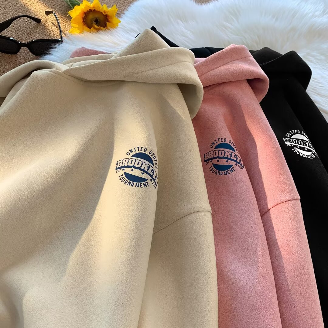 살구색 후드 땀 소년 봄과 가을 미국 무거운 트렌드 정사이즈 십대 유행 풀오버 느슨한 매일스토어 가기