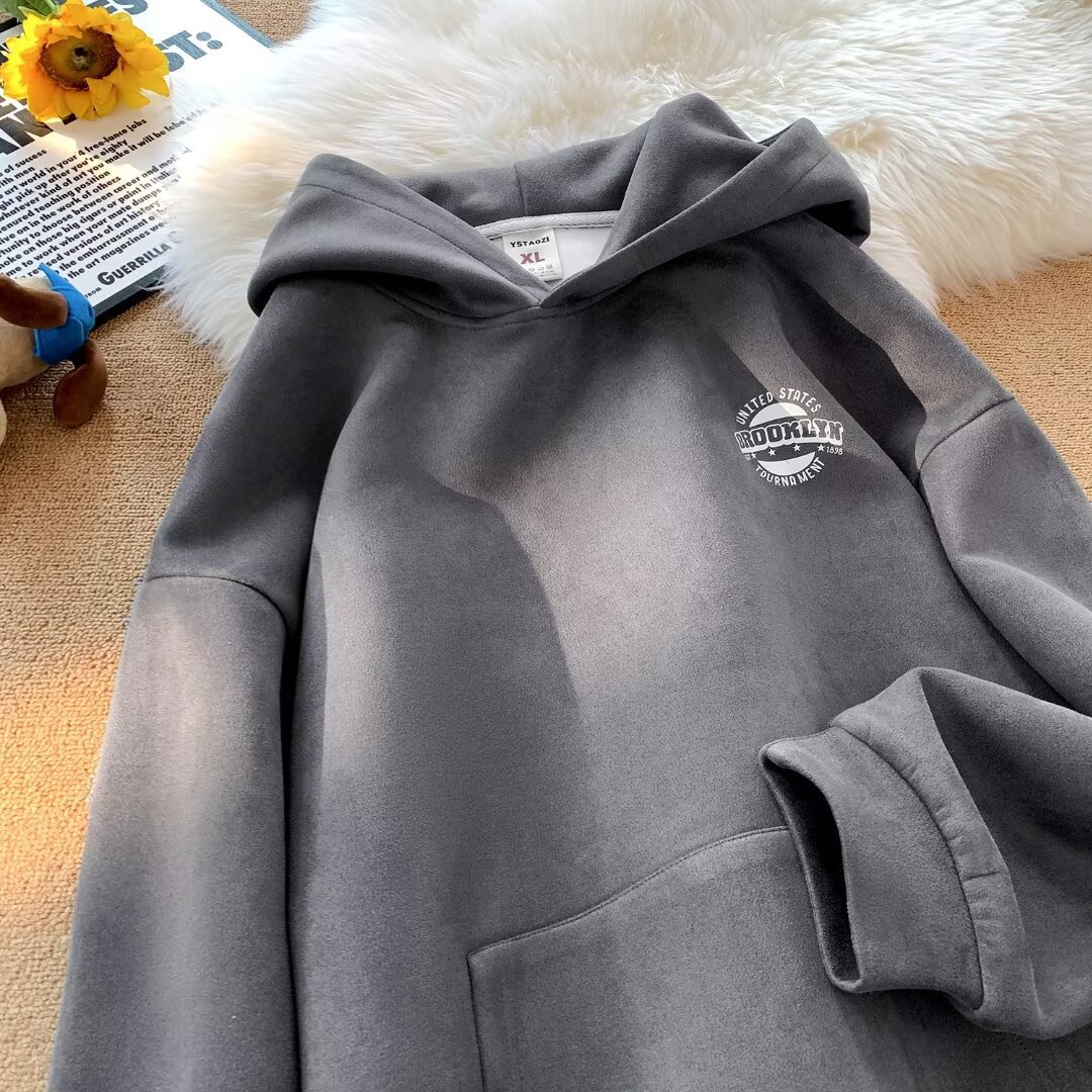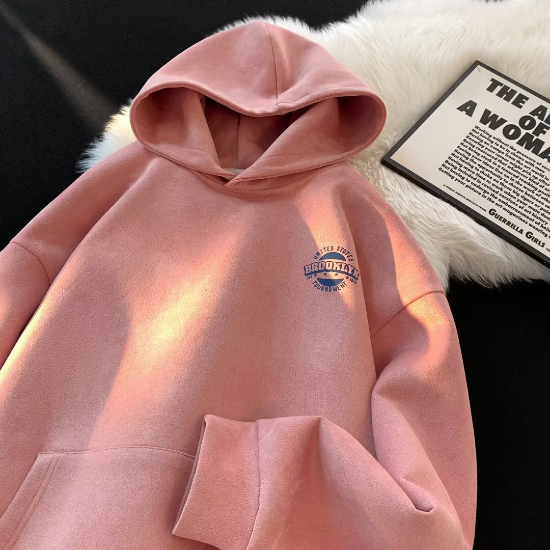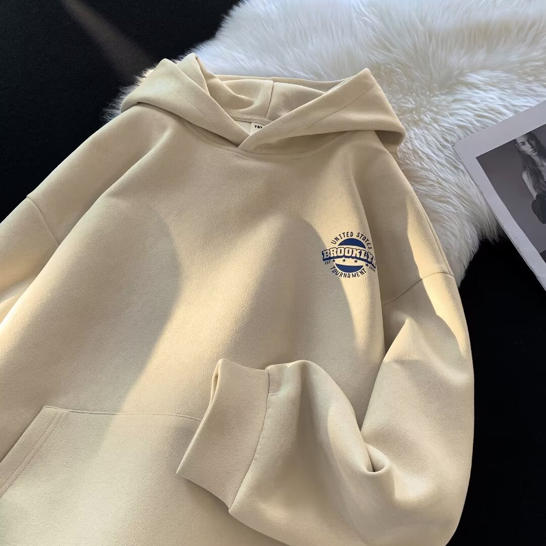 살구색 후드 땀 소년 봄과 가을 미국 무거운 트렌드 정사이즈 십대 유행 풀오버 느슨한 매일