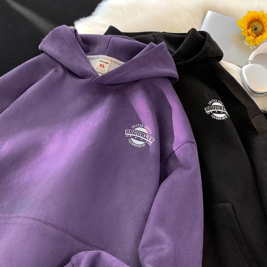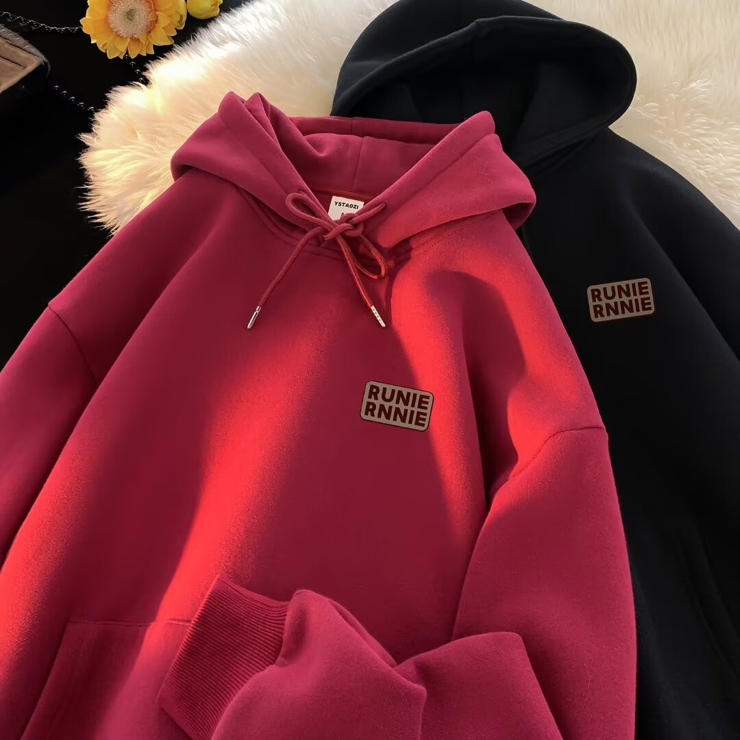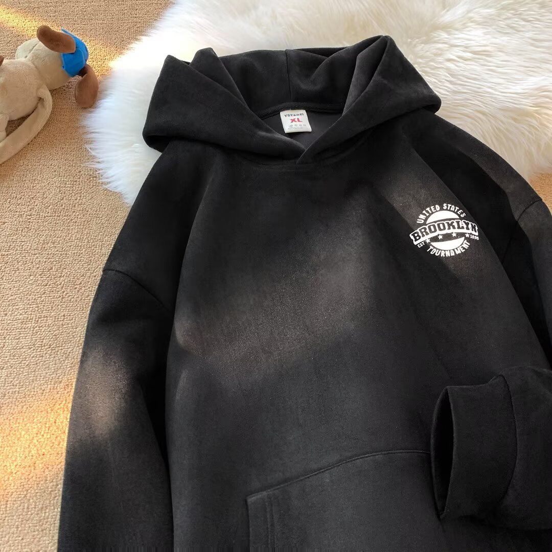 살구색 후드 땀 소년 봄과 가을 미국 무거운 트렌드 정사이즈 십대 유행 풀오버 느슨한 매일