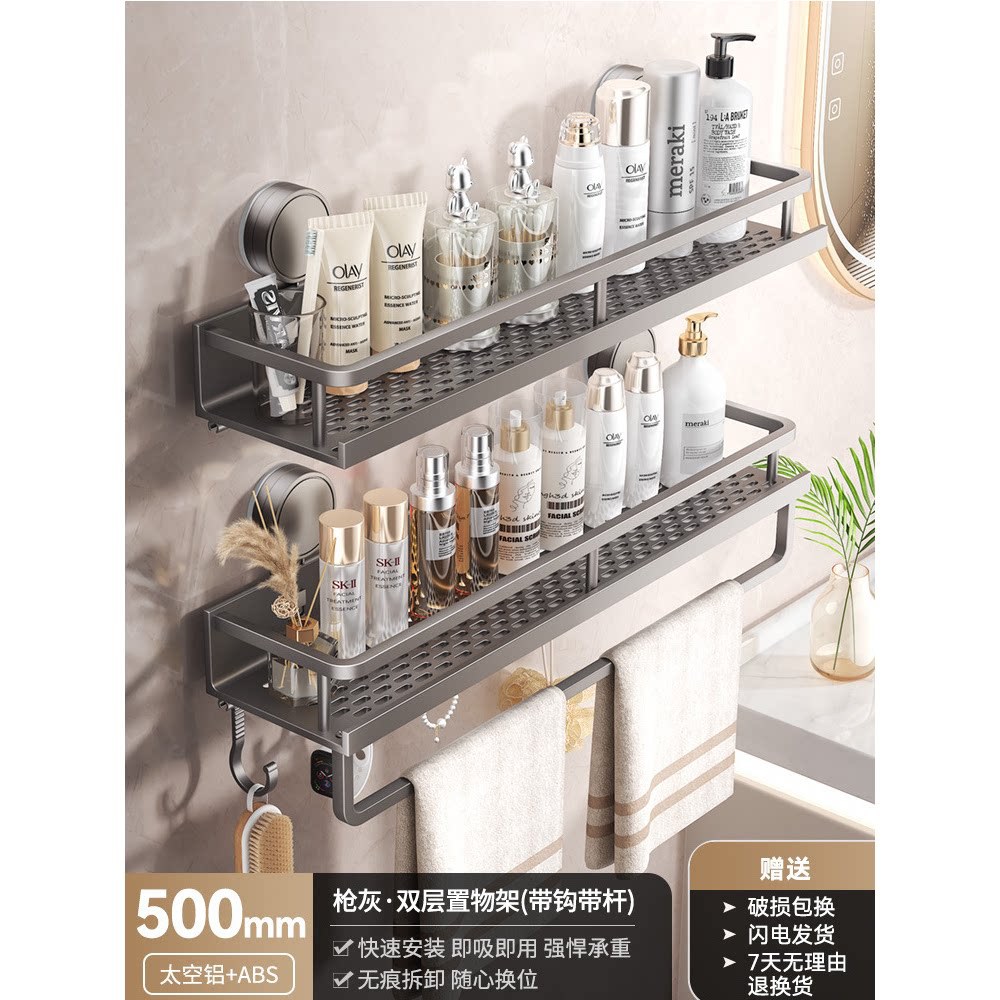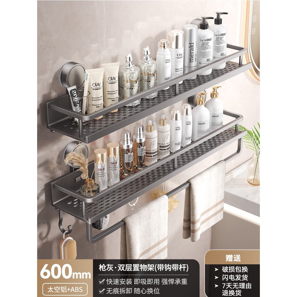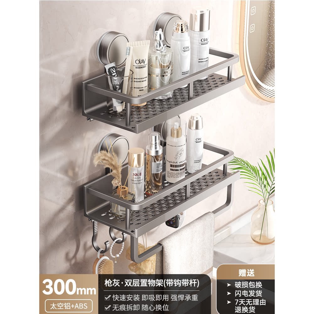 공간 알루미늄 화장실 흡입 컵 저장 랙 벽걸이 비 천공 욕실 타월 랙 세척 테이블 다기능 보관스토어 가기