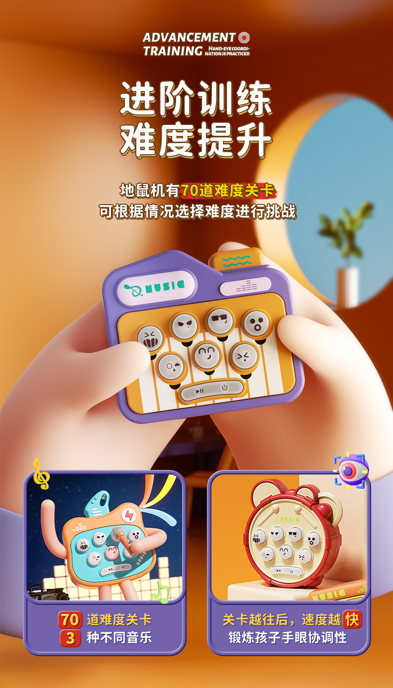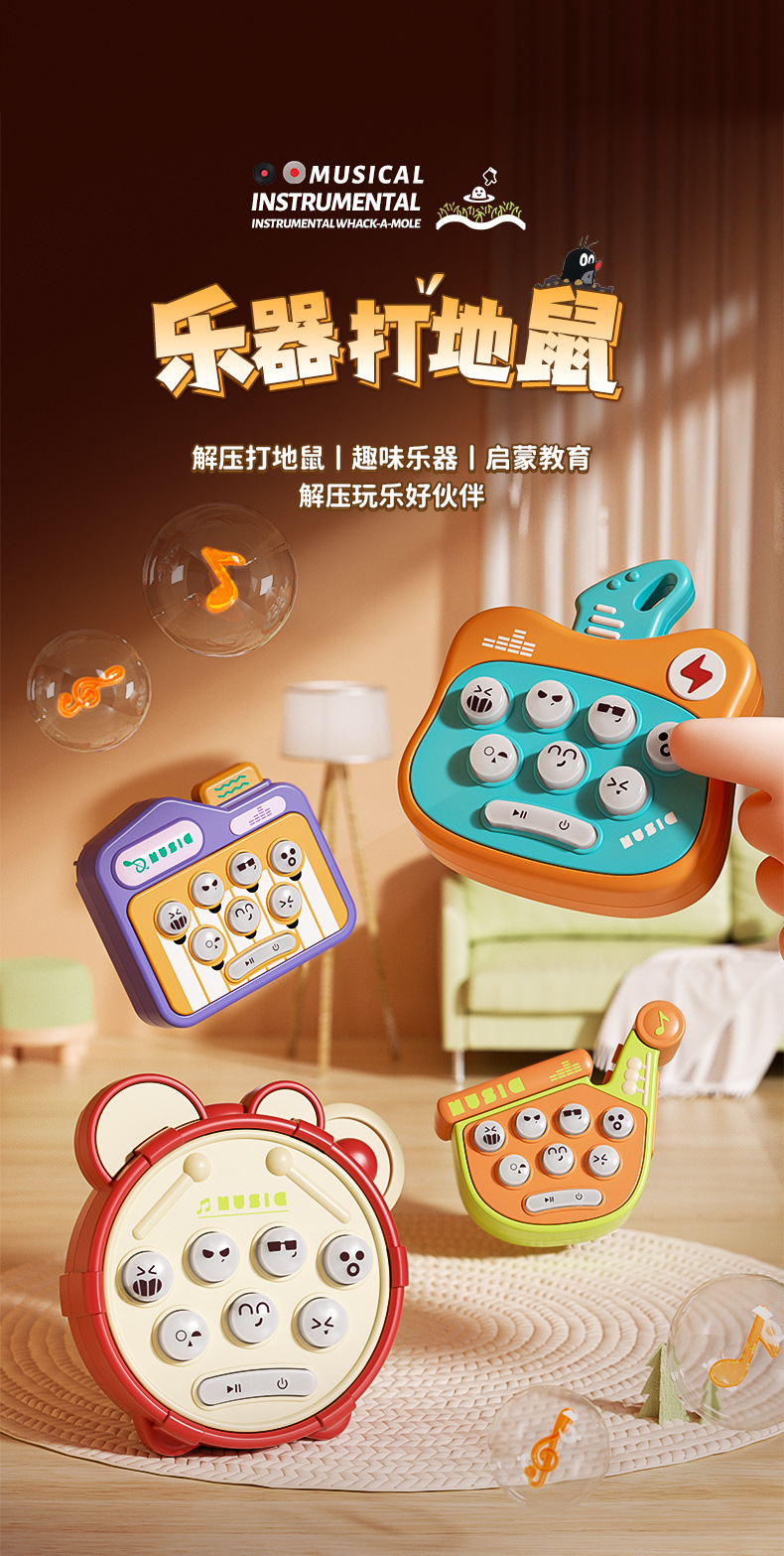 악기 만화 쥐잡기 전자 게임, 챌린지 완성 및 스트레스 해소, 어린이 교육용 장난감, 작은 선물, 음악 요소 포함