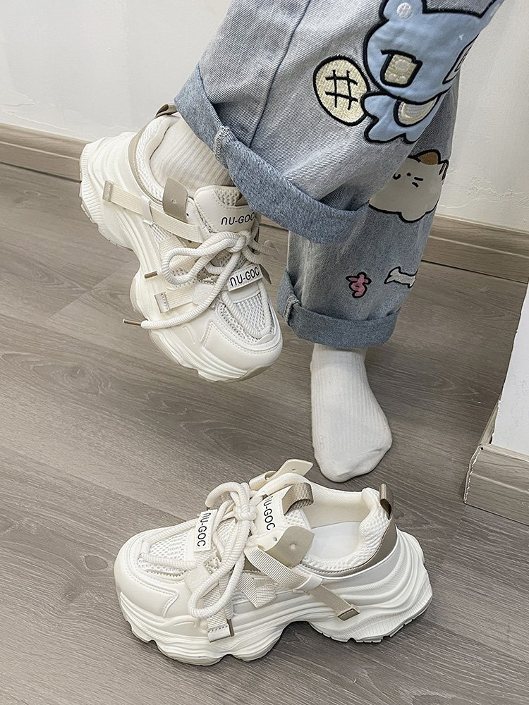 여성을 위한 스트리트 스타일 아빠 신발 2024 새로운 두꺼운 밑창으로 발을 높이고 작은 운동화 학생용 가벼운 여성 신발 편안하고 다재다능함