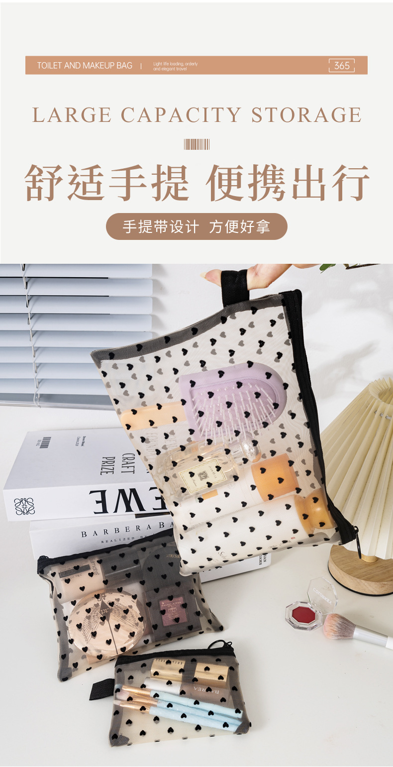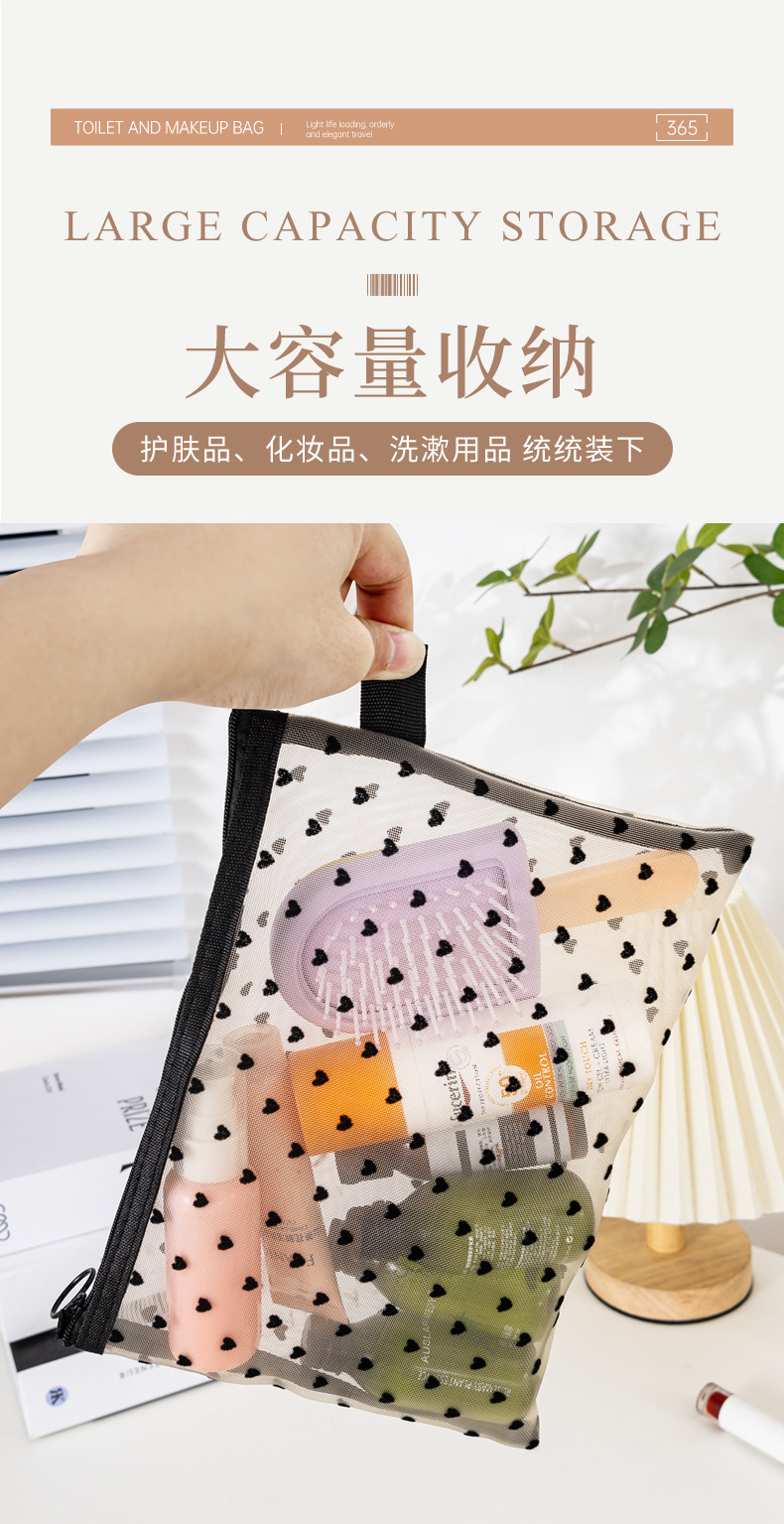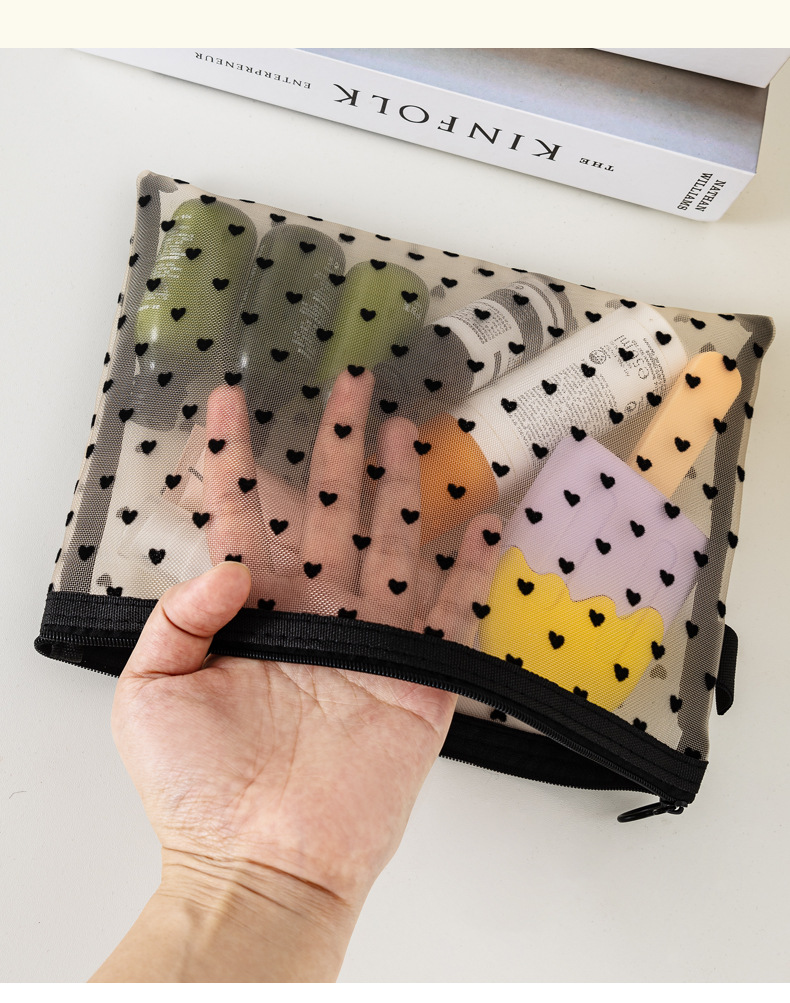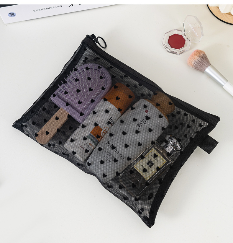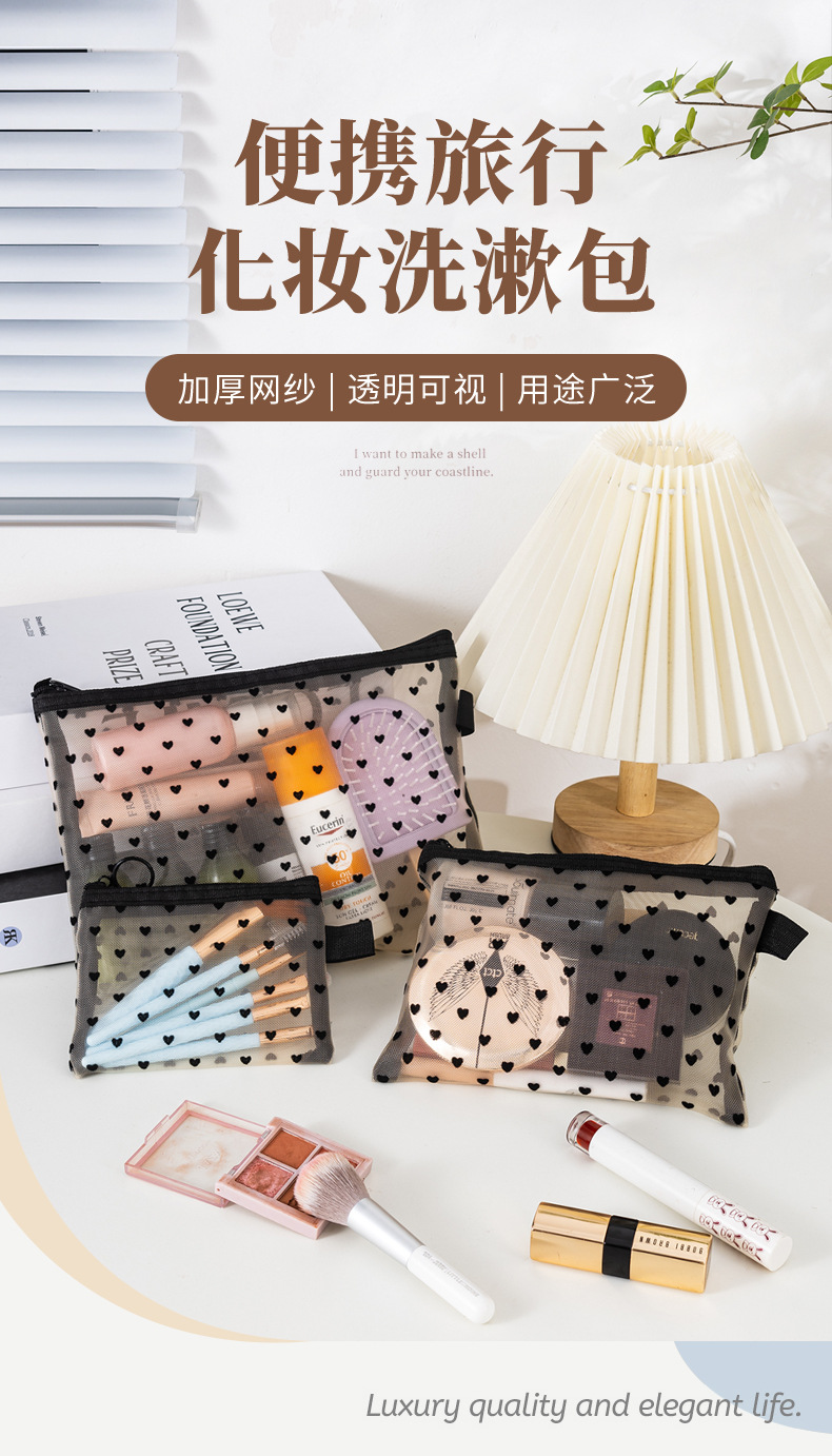 새로운 메쉬 메이크업 가방 잠금 사랑 저장 가방 대용량 세척 가방 휴대용 화장품 보관 가방