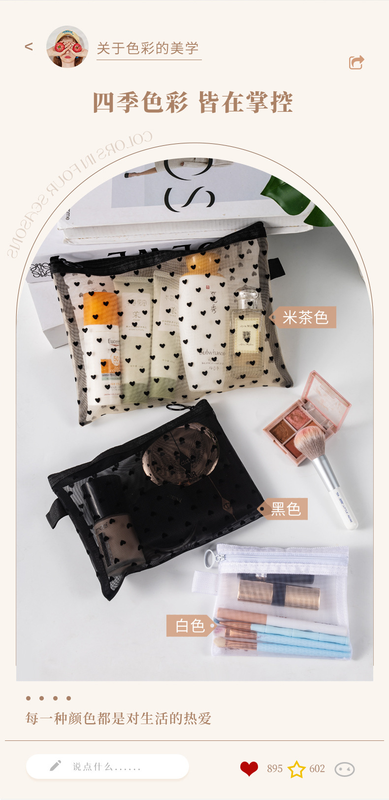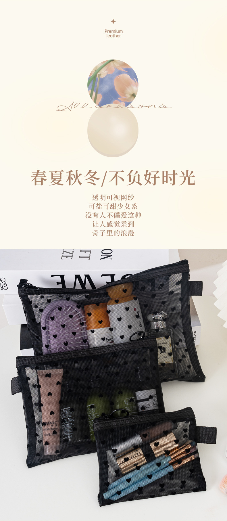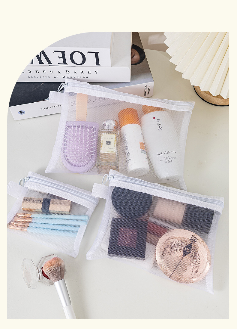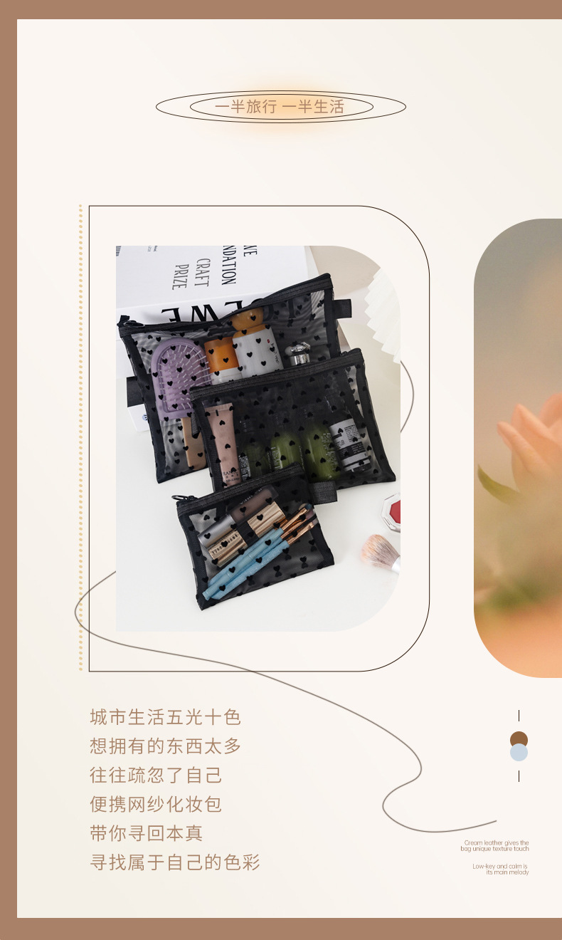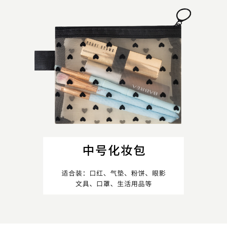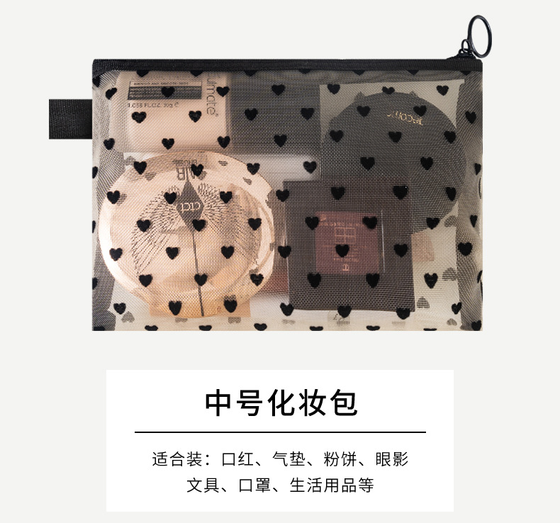 새로운 메쉬 메이크업 가방 잠금 사랑 저장 가방 대용량 세척 가방 휴대용 화장품 보관 가방
