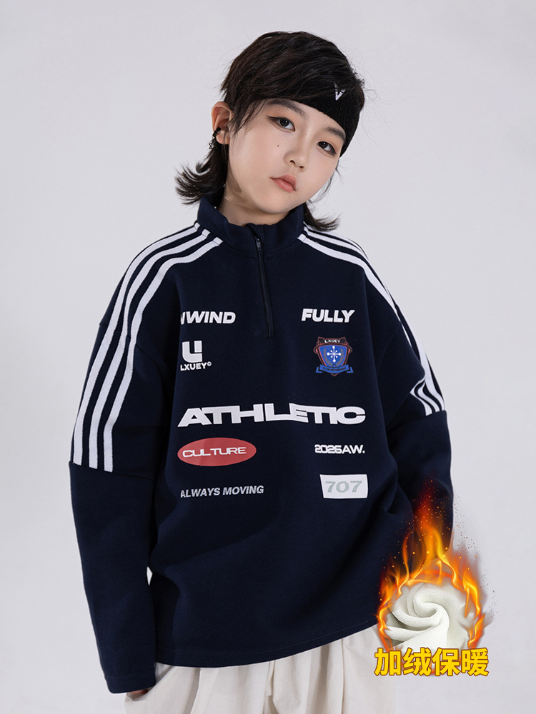 남학생 미국 복고풍 인쇄 오토바이 의류 조끼 가을/겨울 기모 2024 새로운 큰 어린이 패션 ruffian 잘 생긴 재킷스토어 가기