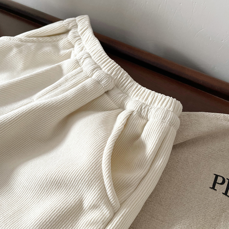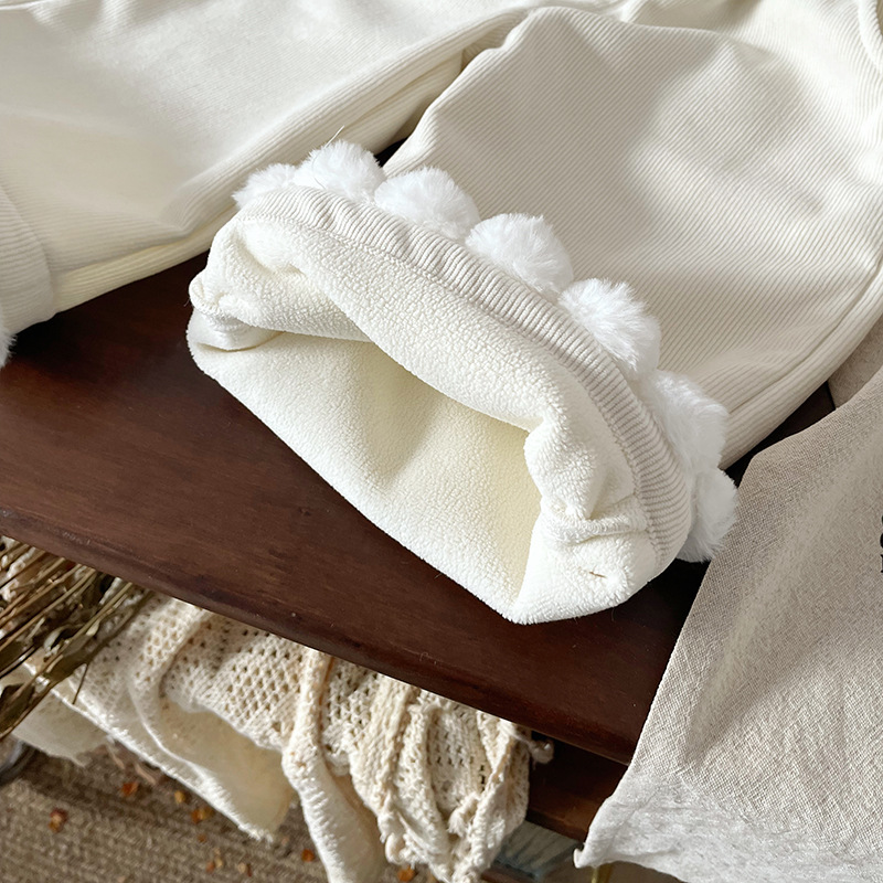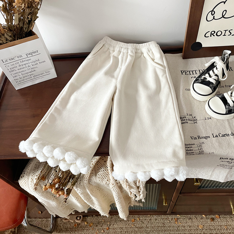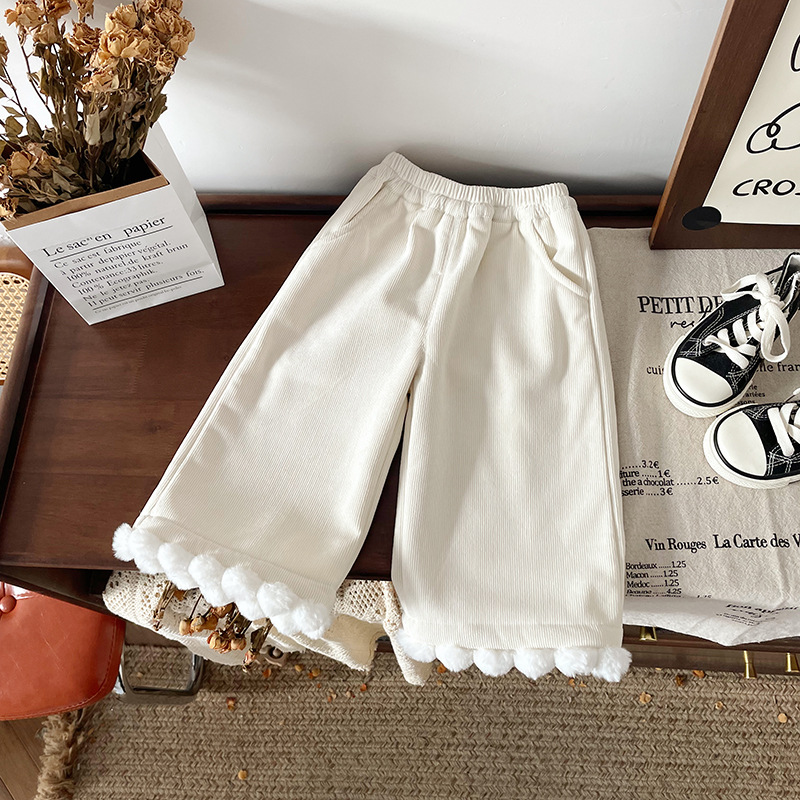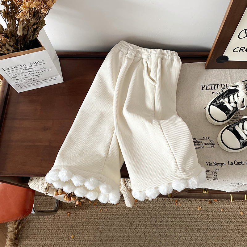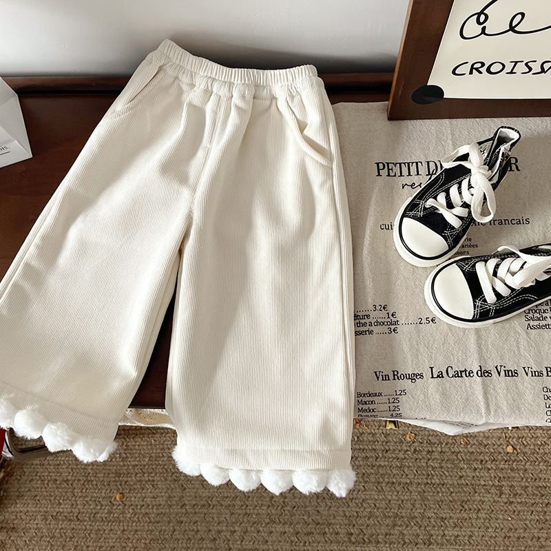 어린이 캐시미어 바지 2024 가을과 겨울 새로운 기모 두꺼운 달콤한 레이스 캐주얼 탄성 허리 와이드 다리 바지스토어 가기