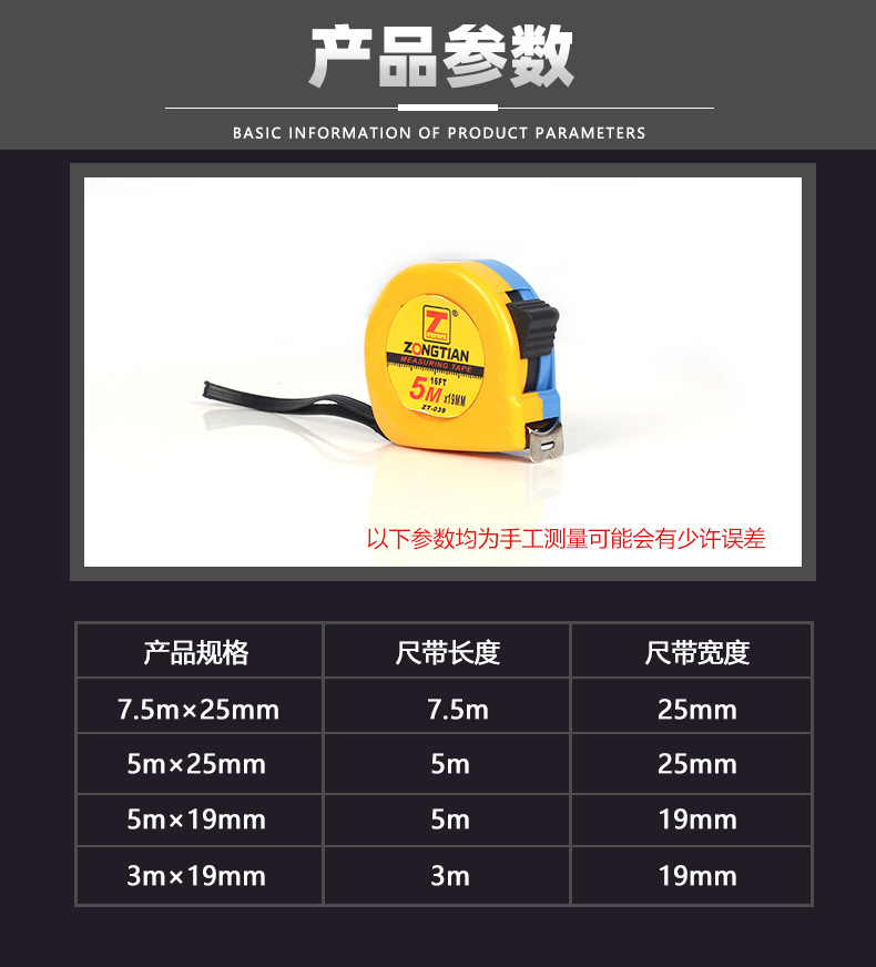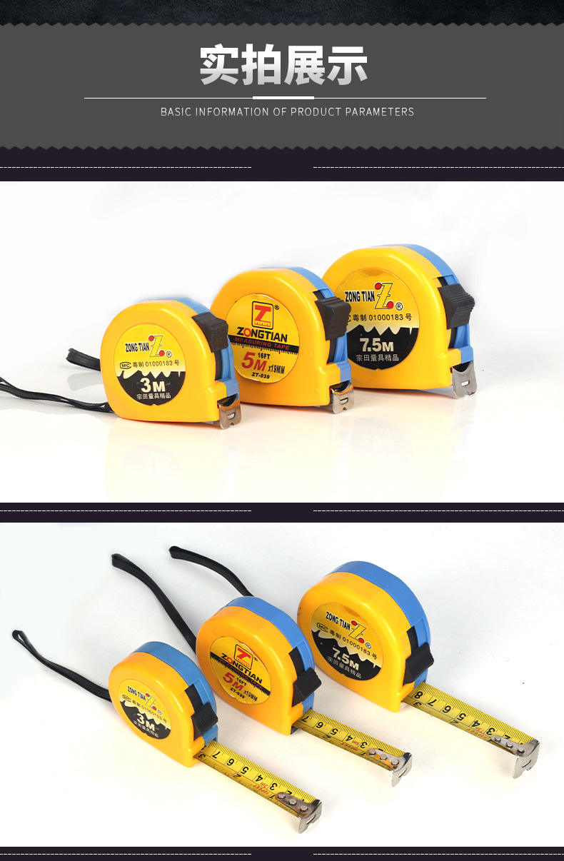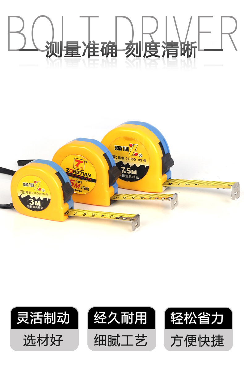 공장 직접 고정밀 테이프 측정 5 미터 낙하 방지 3 미터 7.5 미터 인치 두꺼운 하드 내마모성 스틸 테이프 측정스토어 가기