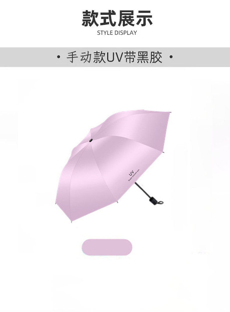 UV 수동 검은 접착제 선 스크린 햇살 우산 이중 목적 우산 접히는 태양 우산 핑크/난간스토어 가기