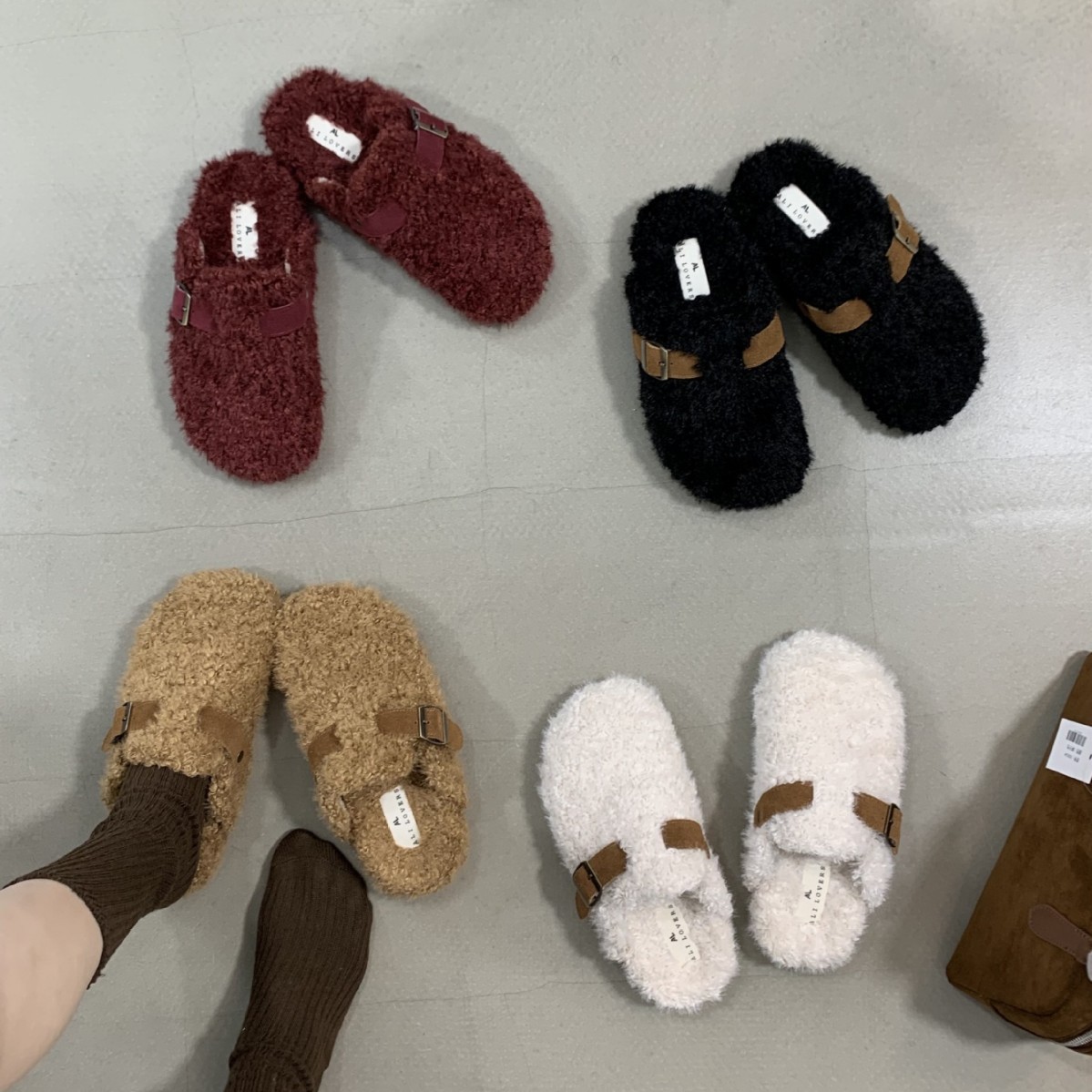 2024 년 가을과 겨울을위한 두꺼운 밑창 뮬러 신발 새로운 외국인 착용 저녁 바람 요정 바오터 프랑스 기모 코튼 걸레 모방 양고기스토어 가기