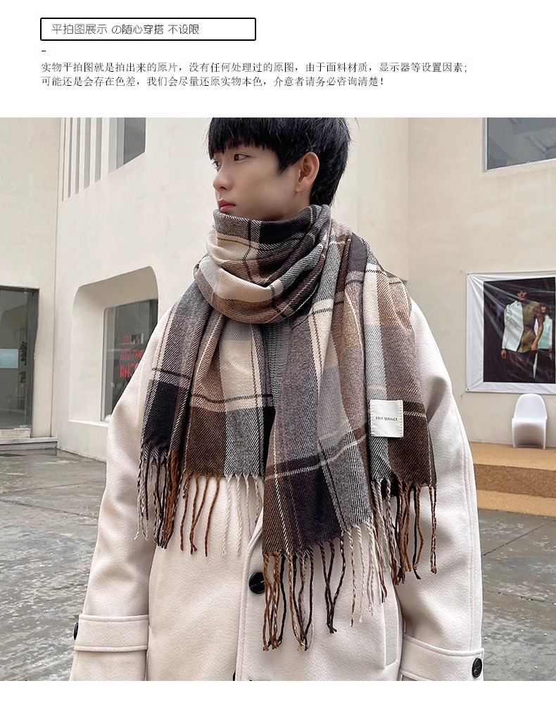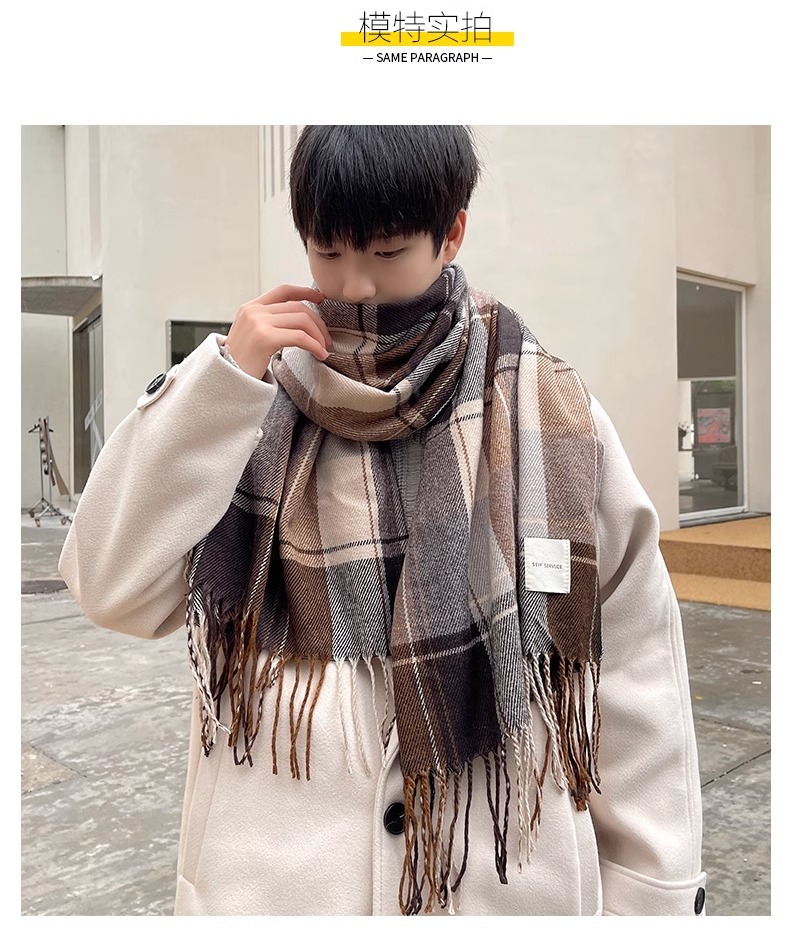 간단한 스카프 남자 가을과 겨울 한국 스타일 체크 무늬 올매치 트렌디 따뜻한 목 보호 새로운 커플의 스카프 방탄 목도리스토어 가기