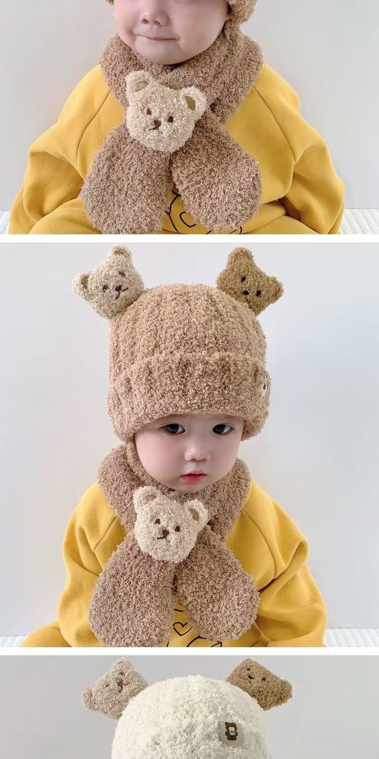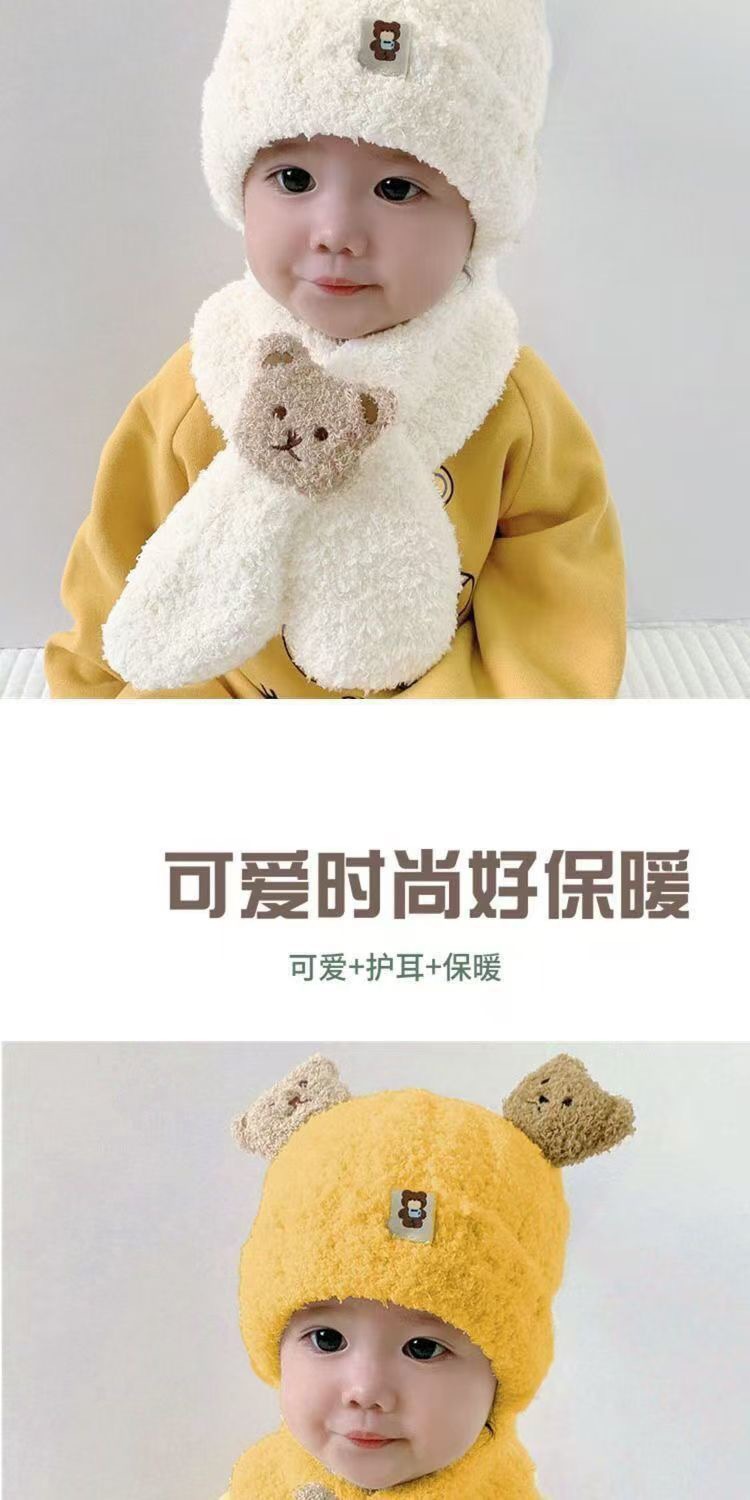 남성과 여성의 아기 가을, 겨울 모자와 스카프 2피스 세트 두껍고 따뜻하고 방풍 아기 소년과 소녀 슈퍼 귀여운 모자