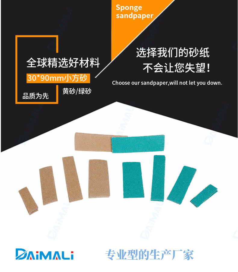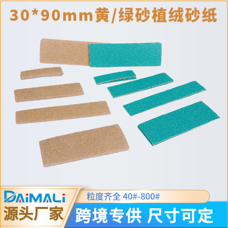 국경 간 공급 노란색 모래 30*90mm 플로킹 사각형 사포 수제 샌딩 녹색 모래 벨벳 작은 사각형 모래 세트