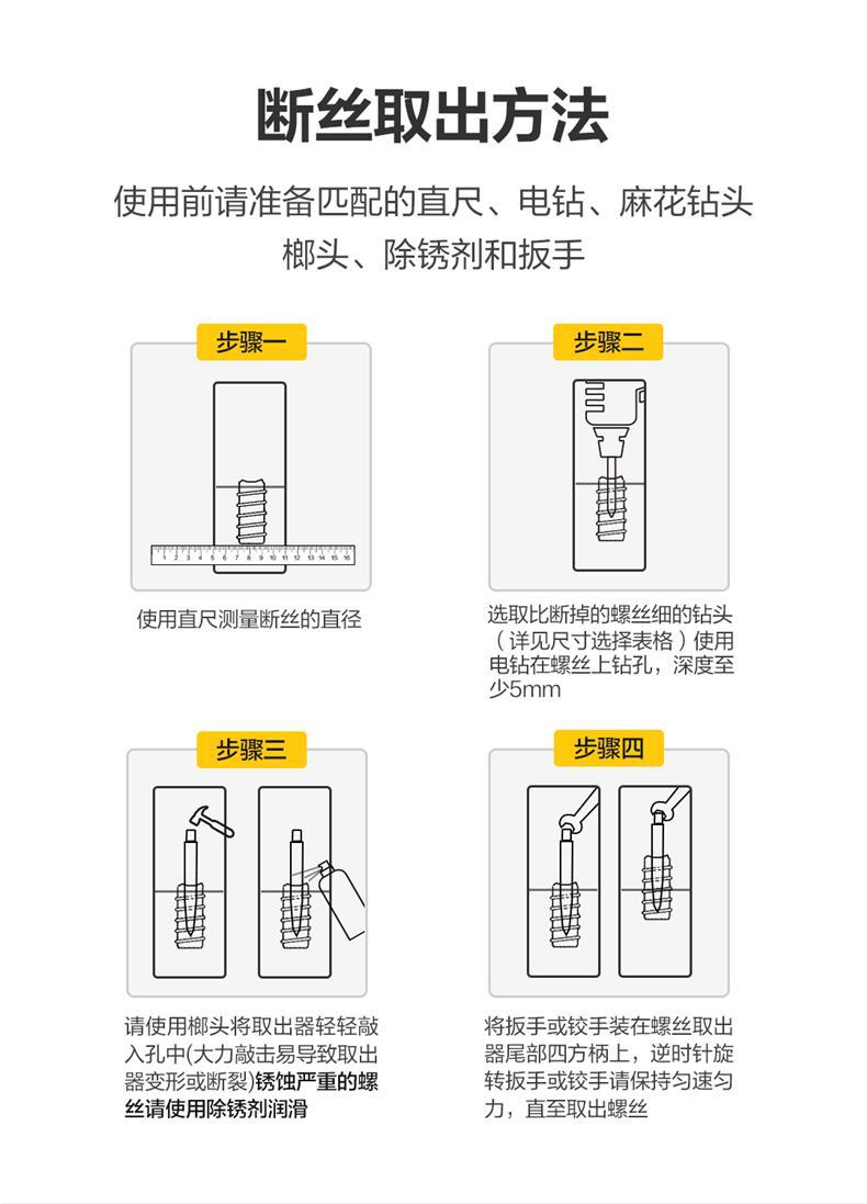 • 나사/수도관 추출기 8개 + 트위스트 드릴 5개(2/3/4/5/6mm)