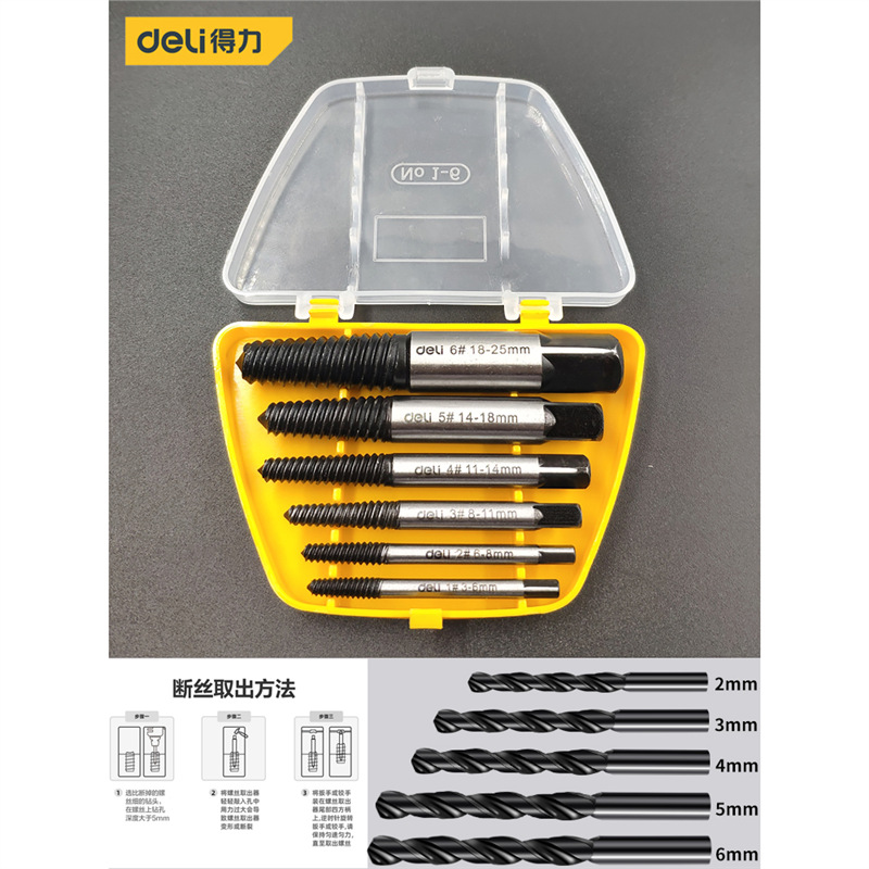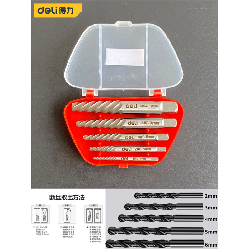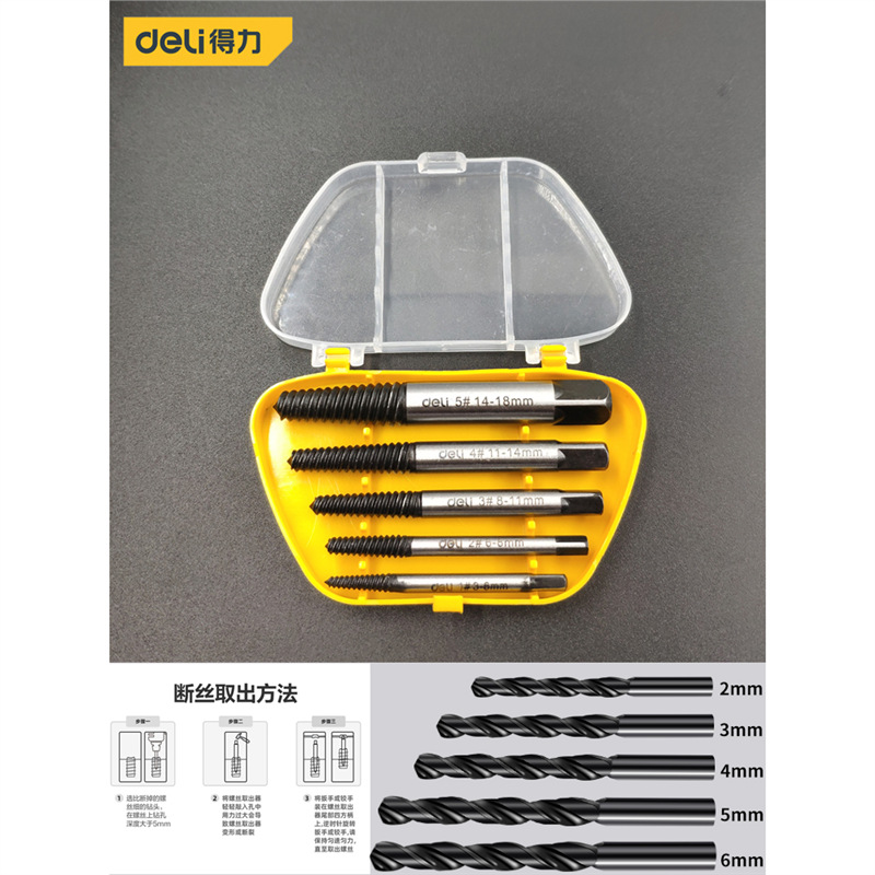 • 나사 추출기 5개(굵은 톱니) + 트위스트 드릴 5개(2/3/4/5/6mm)