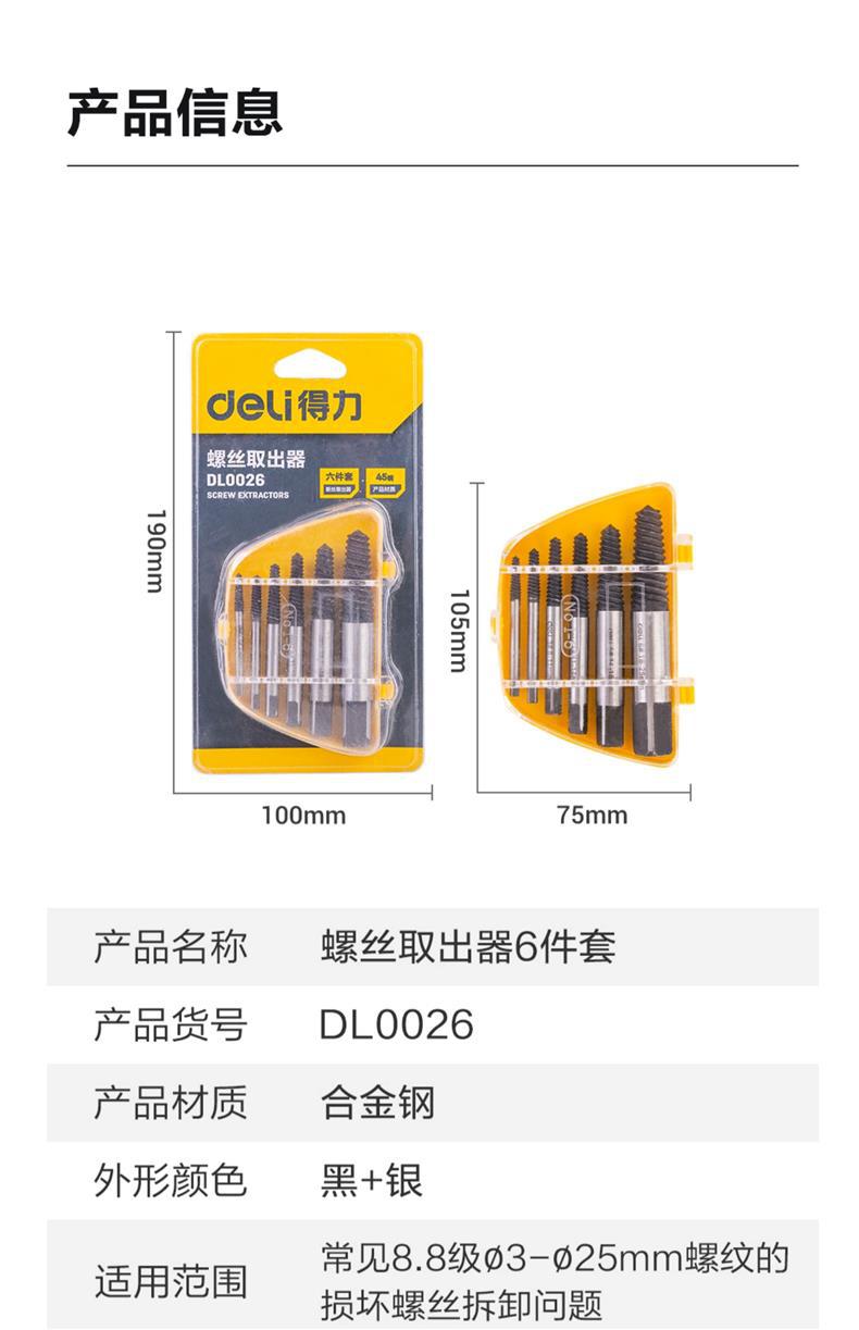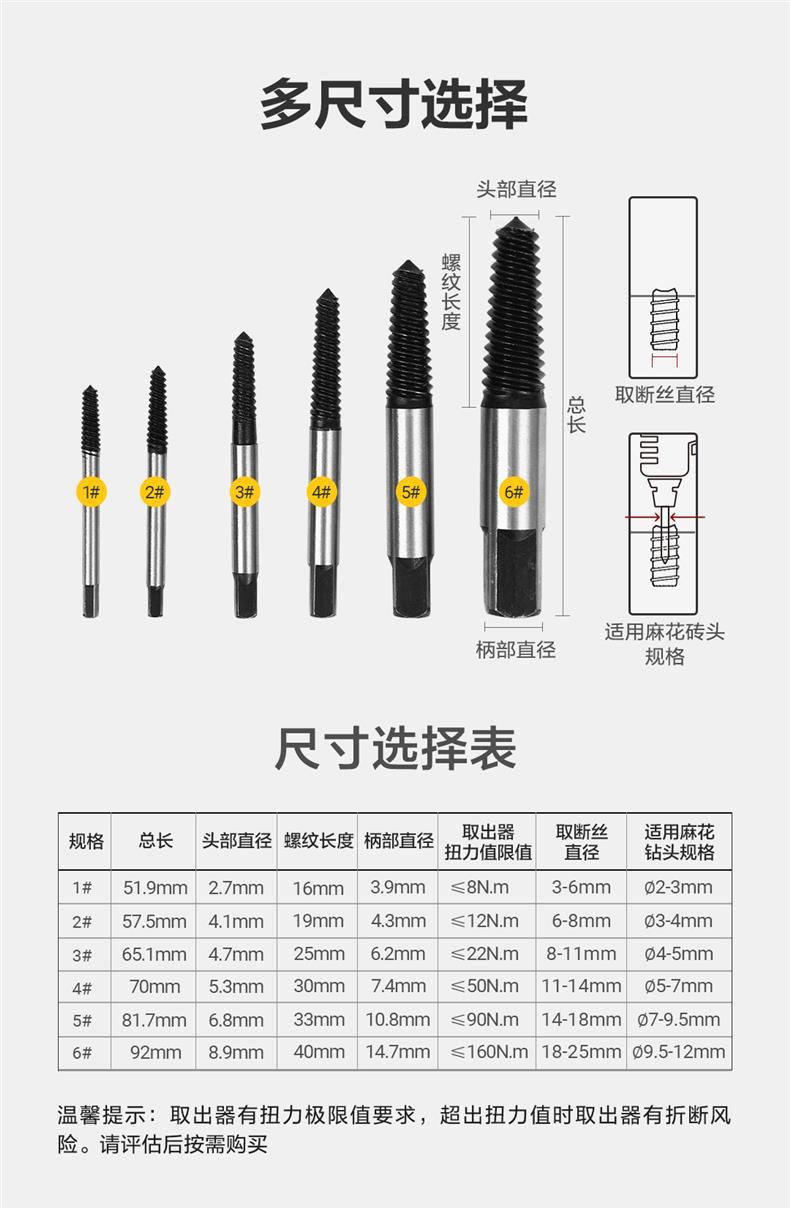 • 나사 추출기 6개 + 트위스트 드릴 5개(2/3/4/5/6mm)
