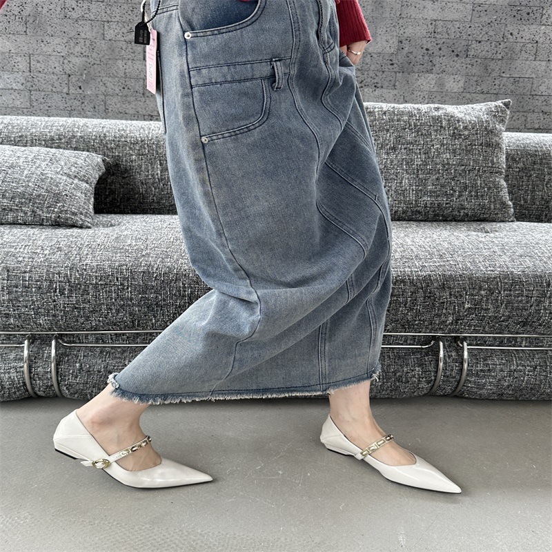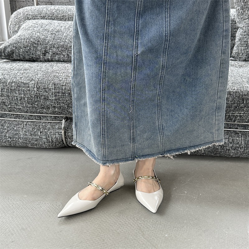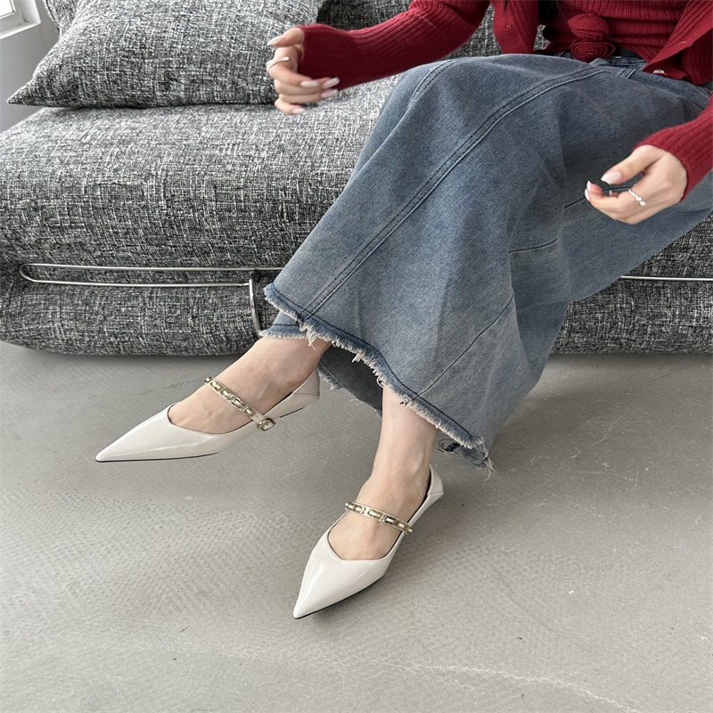 샤넬 스타일 체인 로우 힐 싱글 레이어 신발 여성 2024 가을 새 스타일 여성 신발 프렌치 뾰족한 발가락 메리 제인 여성 신발스토어 가기
