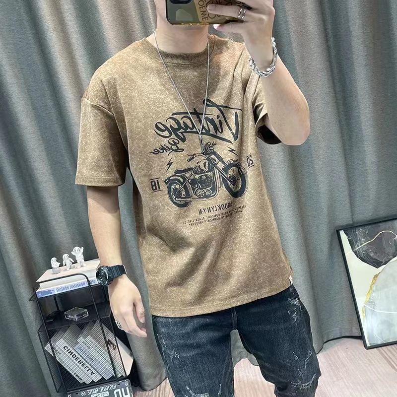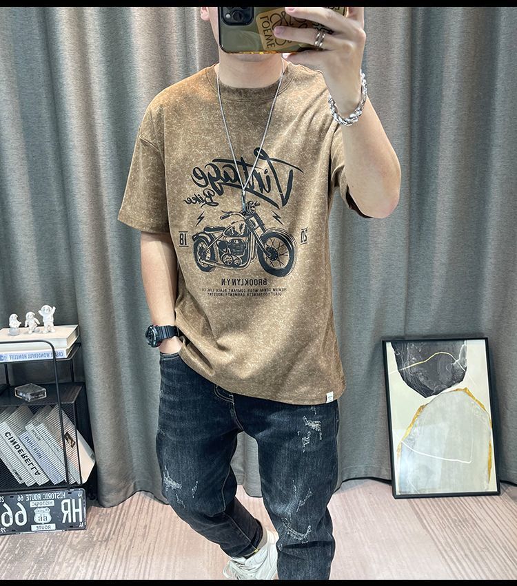 반팔 티셔츠 남자 2024 년 여름 새로운 도착 남자 만화 인쇄 캐주얼 트렌디 반소매 티셔츠 탑