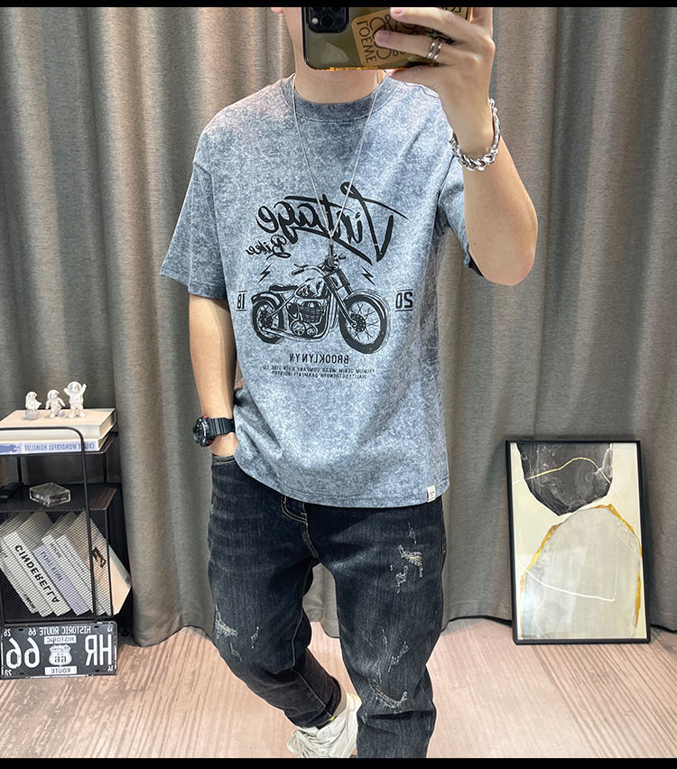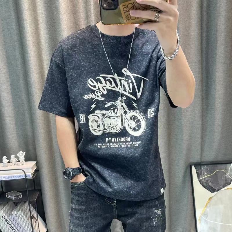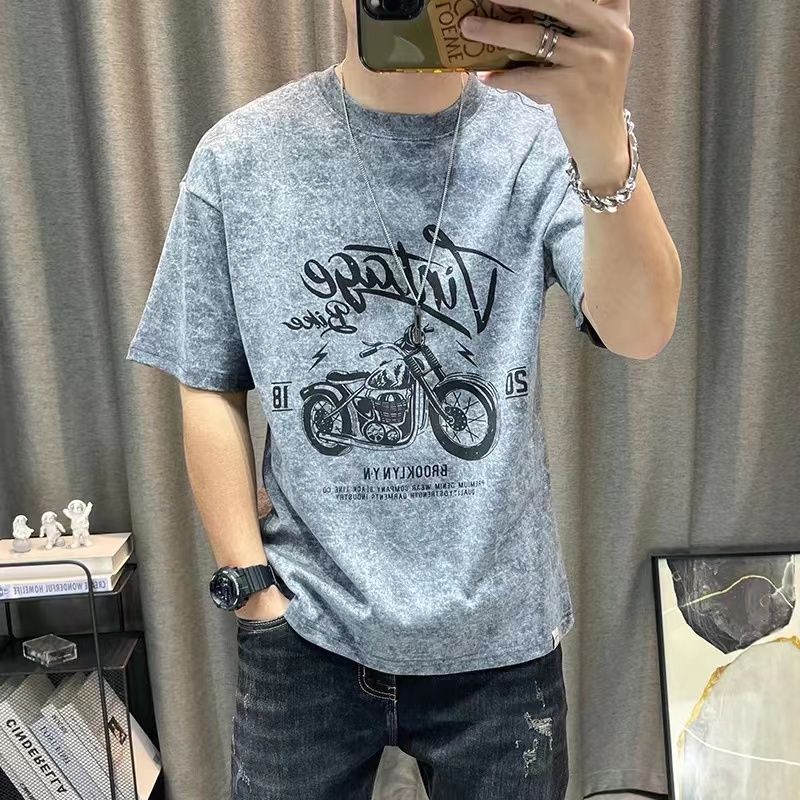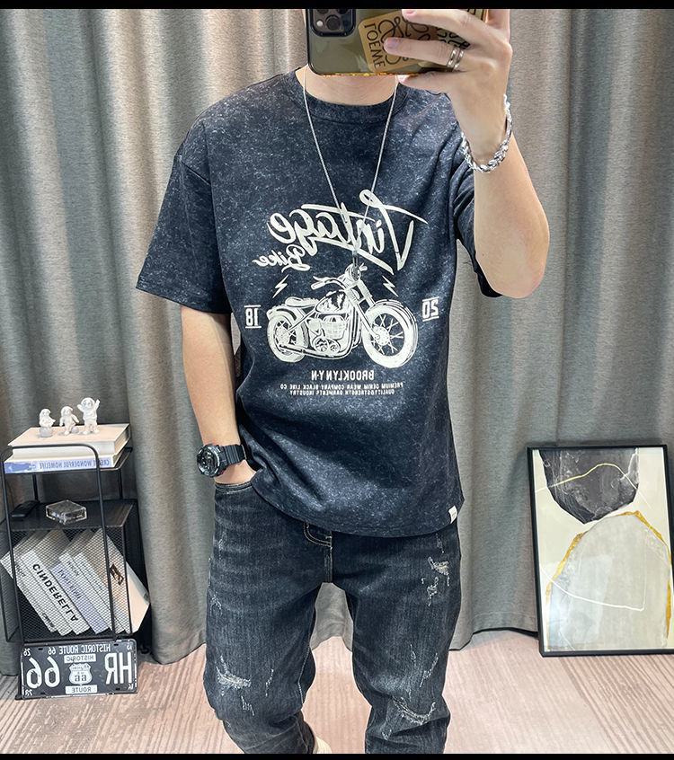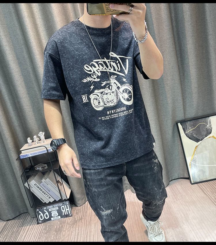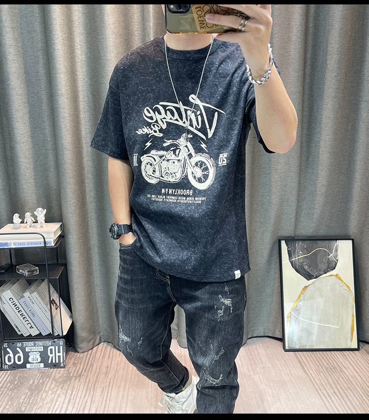 반팔 티셔츠 남자 2024 년 여름 새로운 도착 남자 만화 인쇄 캐주얼 트렌디 반소매 티셔츠 탑스토어 가기