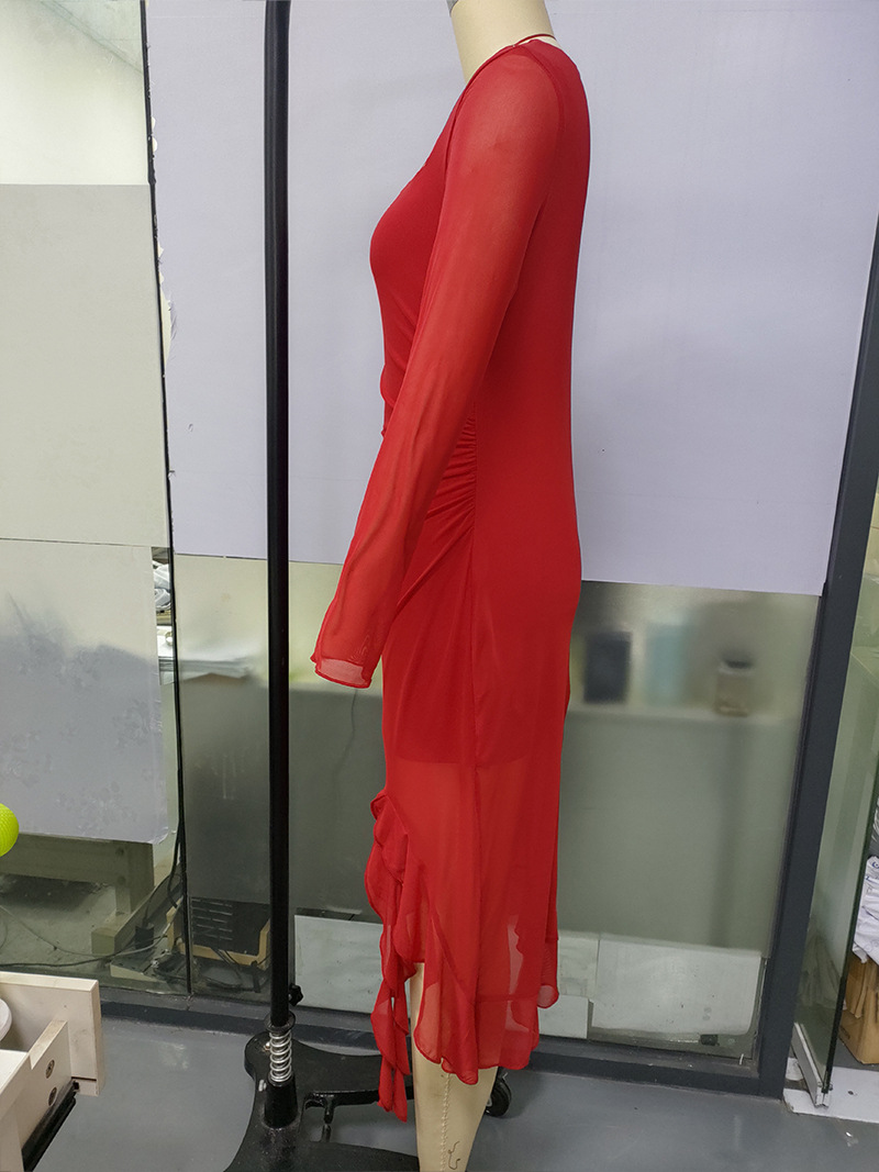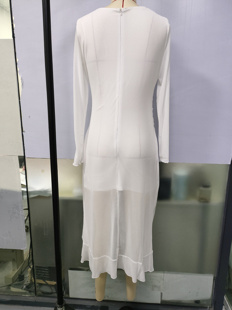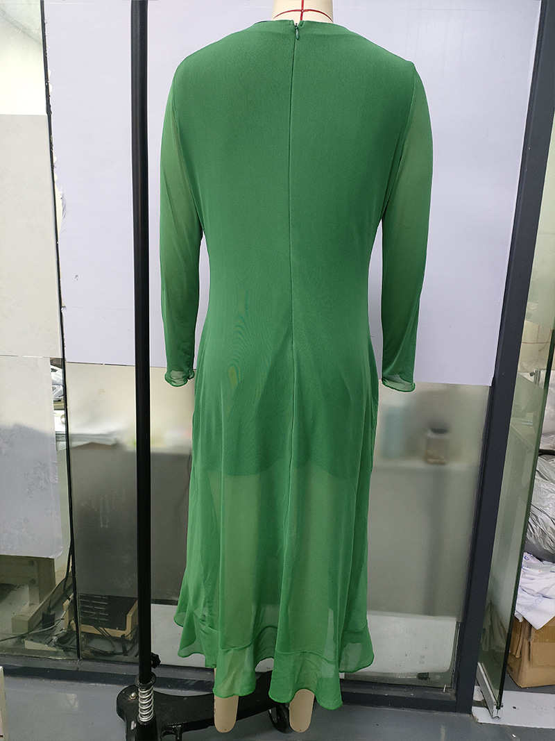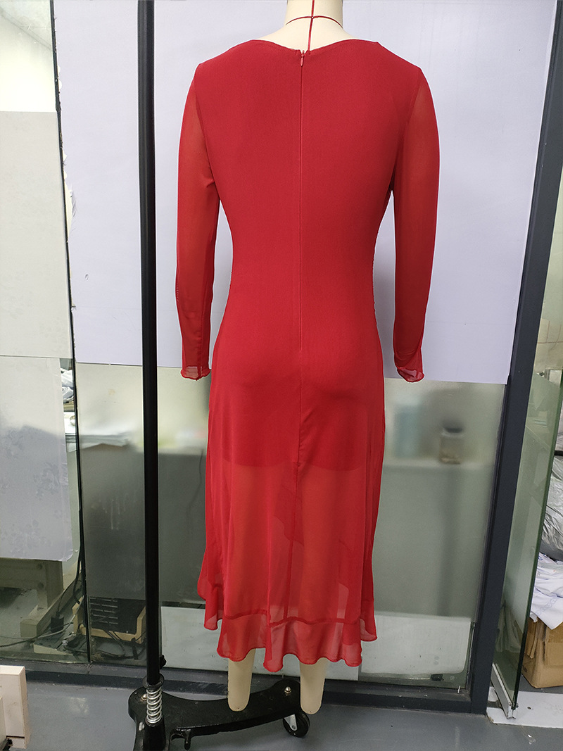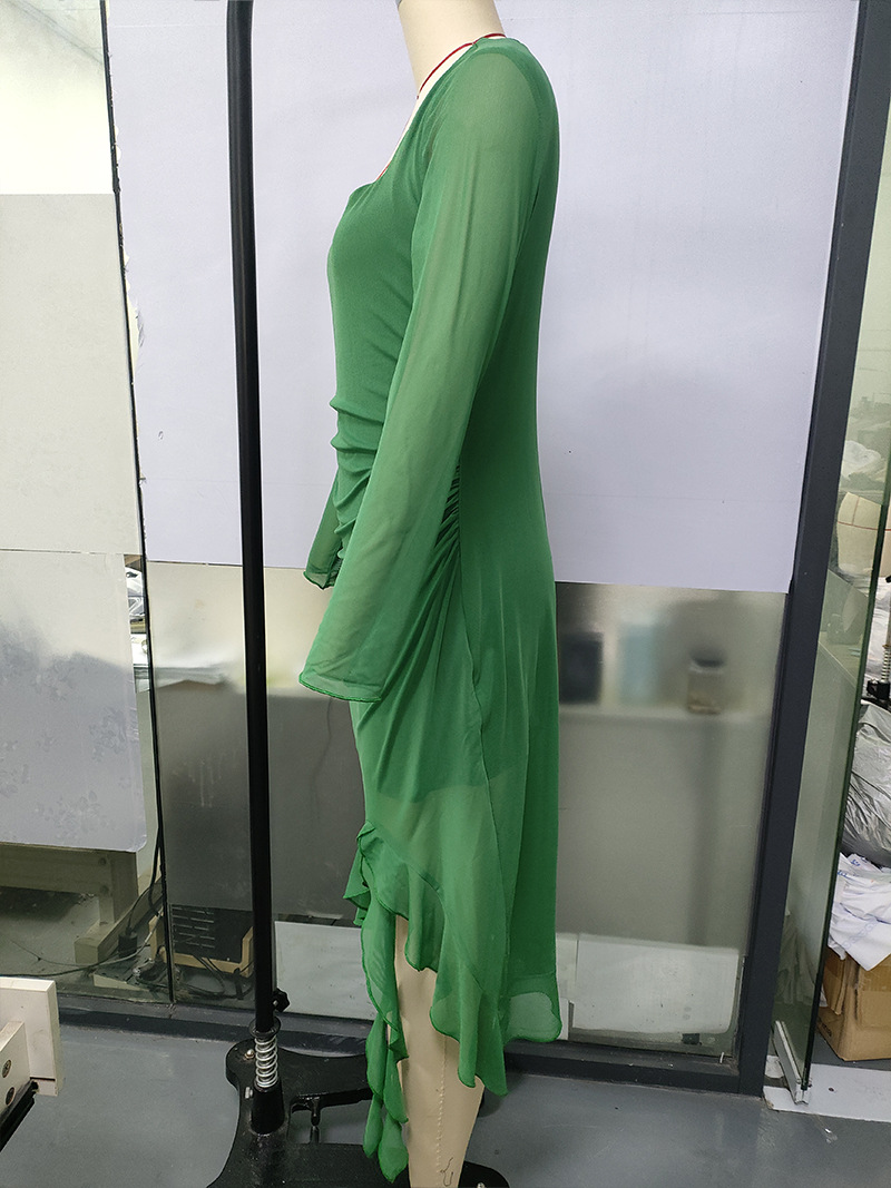 유럽과 미국의 크로스보더 여성 의류 봄 여름 신상 섹시하고 트렌디한 스퀘어 넥 슬림핏 긴팔 패치워크 힙허깅 드레스스토어 가기