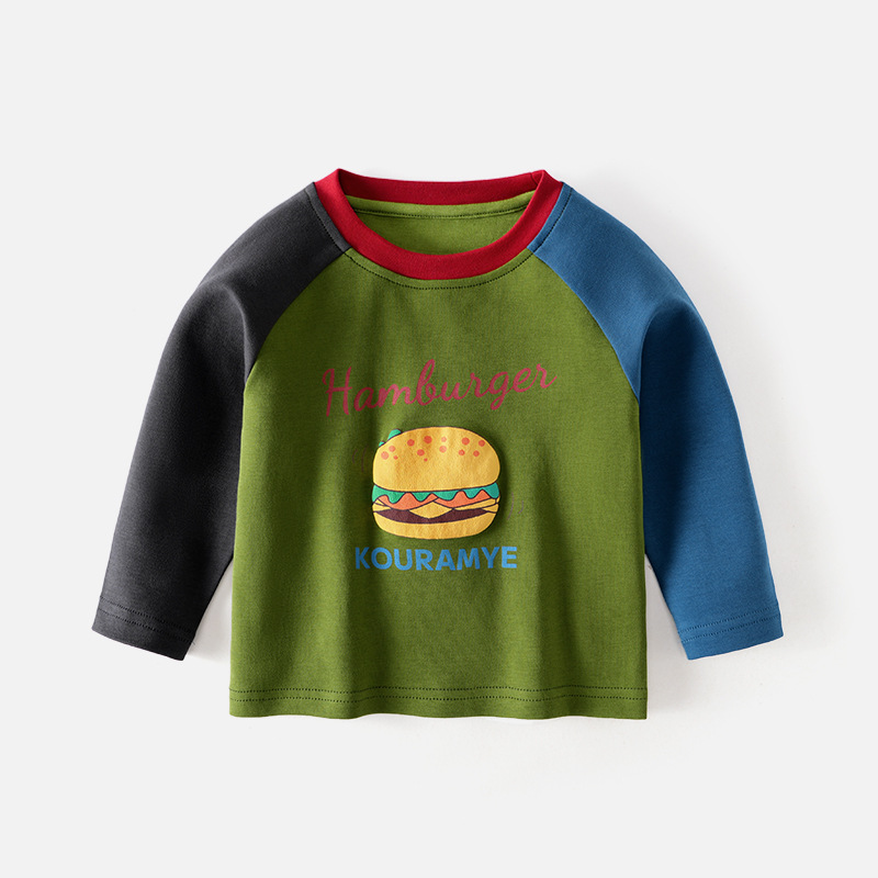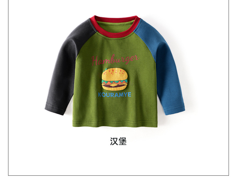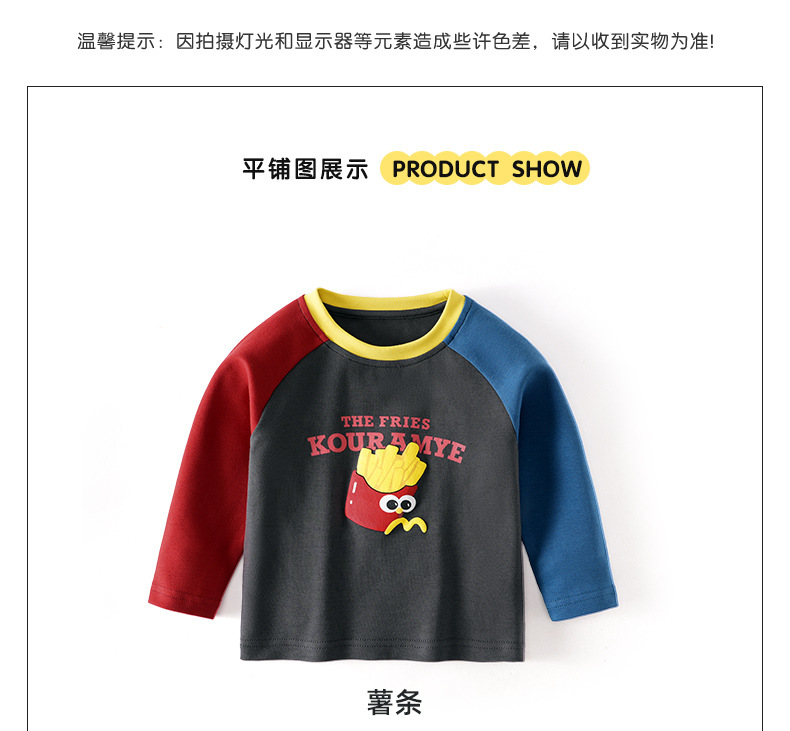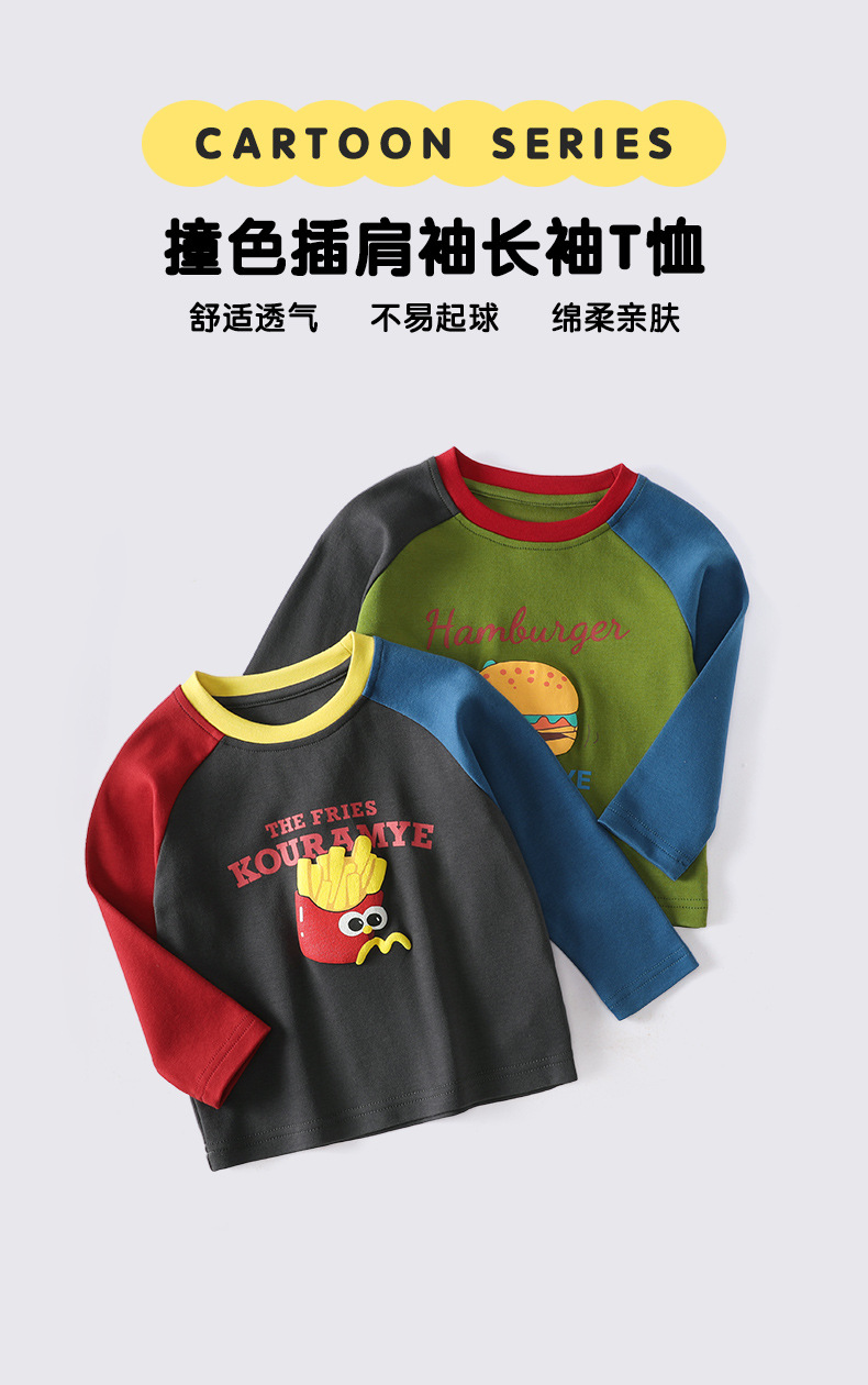 가을 소년 콘트라스트 컬러 베이스 셔츠 한국 라글란 소매 라운드 넥베이스 셔츠 만화 가을 옷 어린이 긴 소매 티셔츠스토어 가기