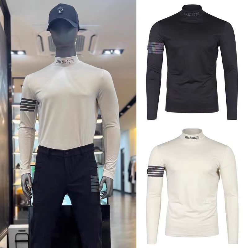 24 새로운 가을, 겨울 한국 골프웨어 남성 스탠드 칼라 패션 긴 소매 해골 탑