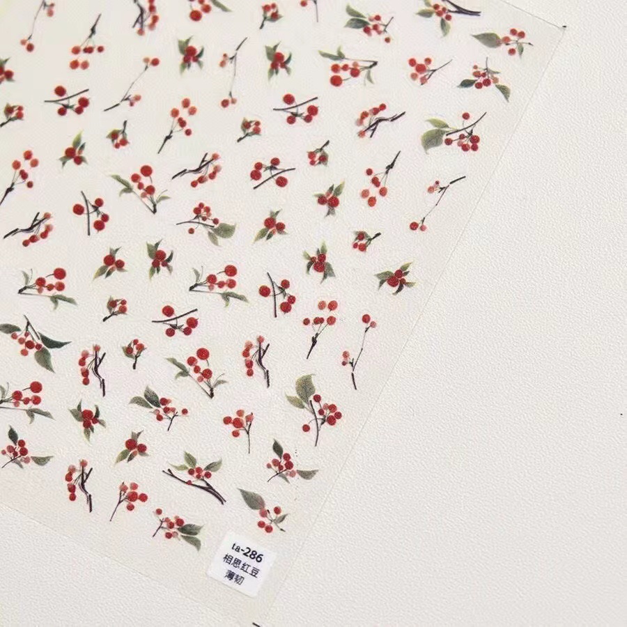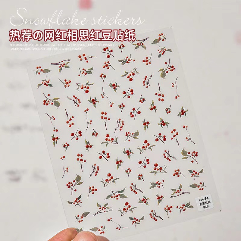 새해 붉은 요소 국가 스타일 프랑스 젤리 아카시아 붉은 콩 새로운 중국 붉은 콩 귀여운 낭구 네일 아트 스티커스토어 가기