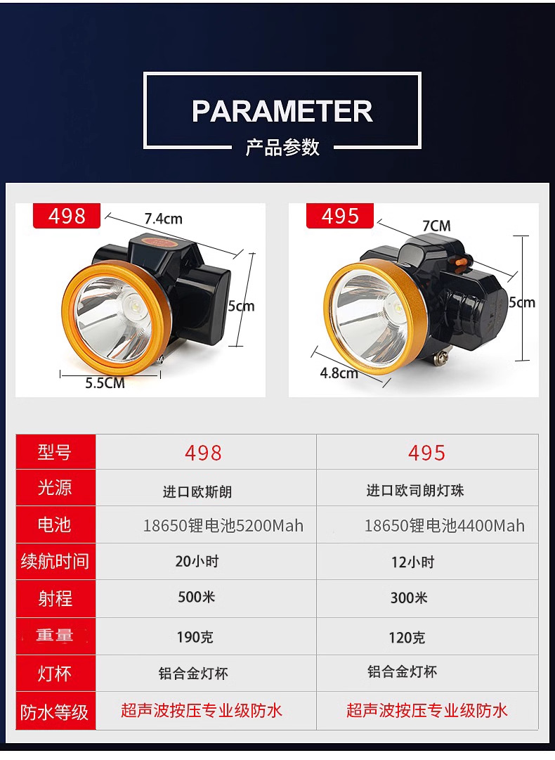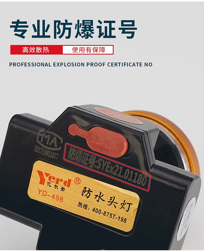 Yierden 498/495 리튬 배터리 헤드라이트 LED 헤드 장착형 지하 광산용 방폭 헬멧 정품 초고휘도스토어 가기