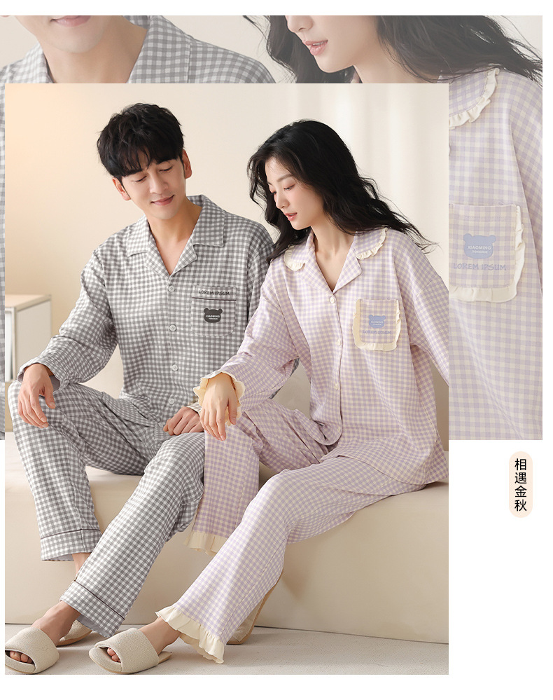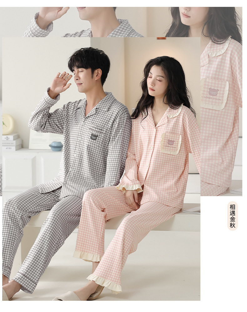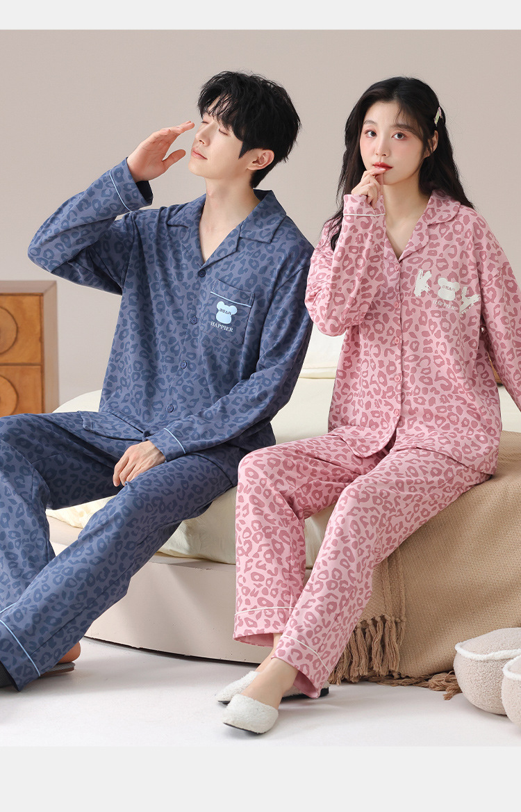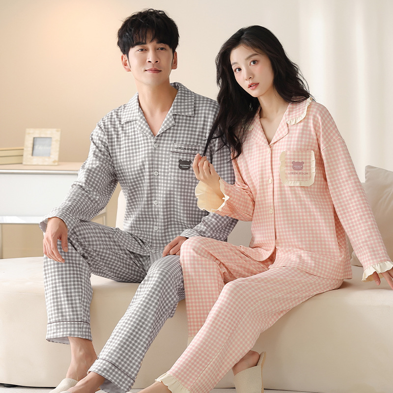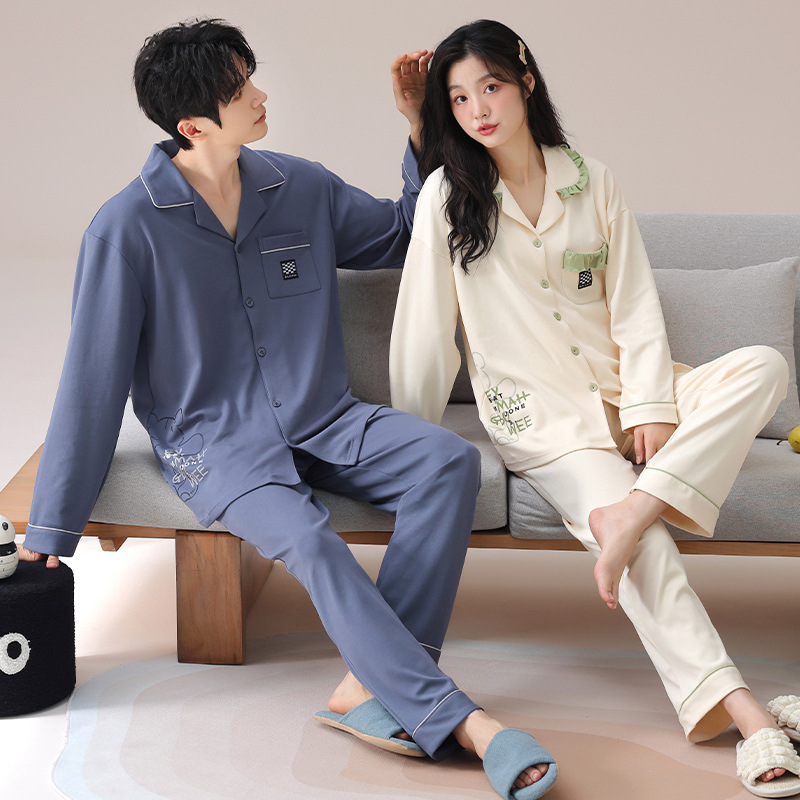 순수한 면화 커플 잠옷 여성의 봄과 가을 달콤한 귀여운 세트 캐주얼 카디건 긴 소매 남성용 겉옷