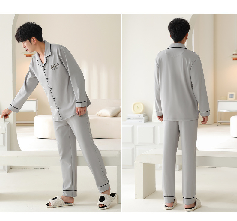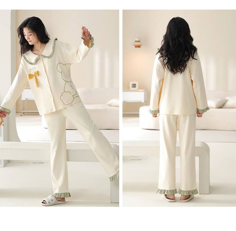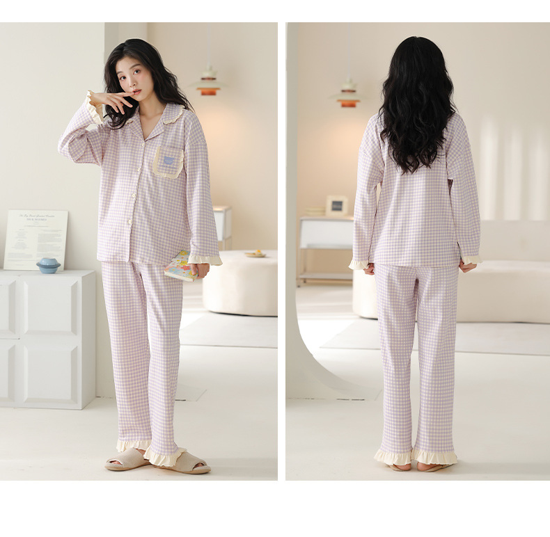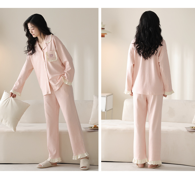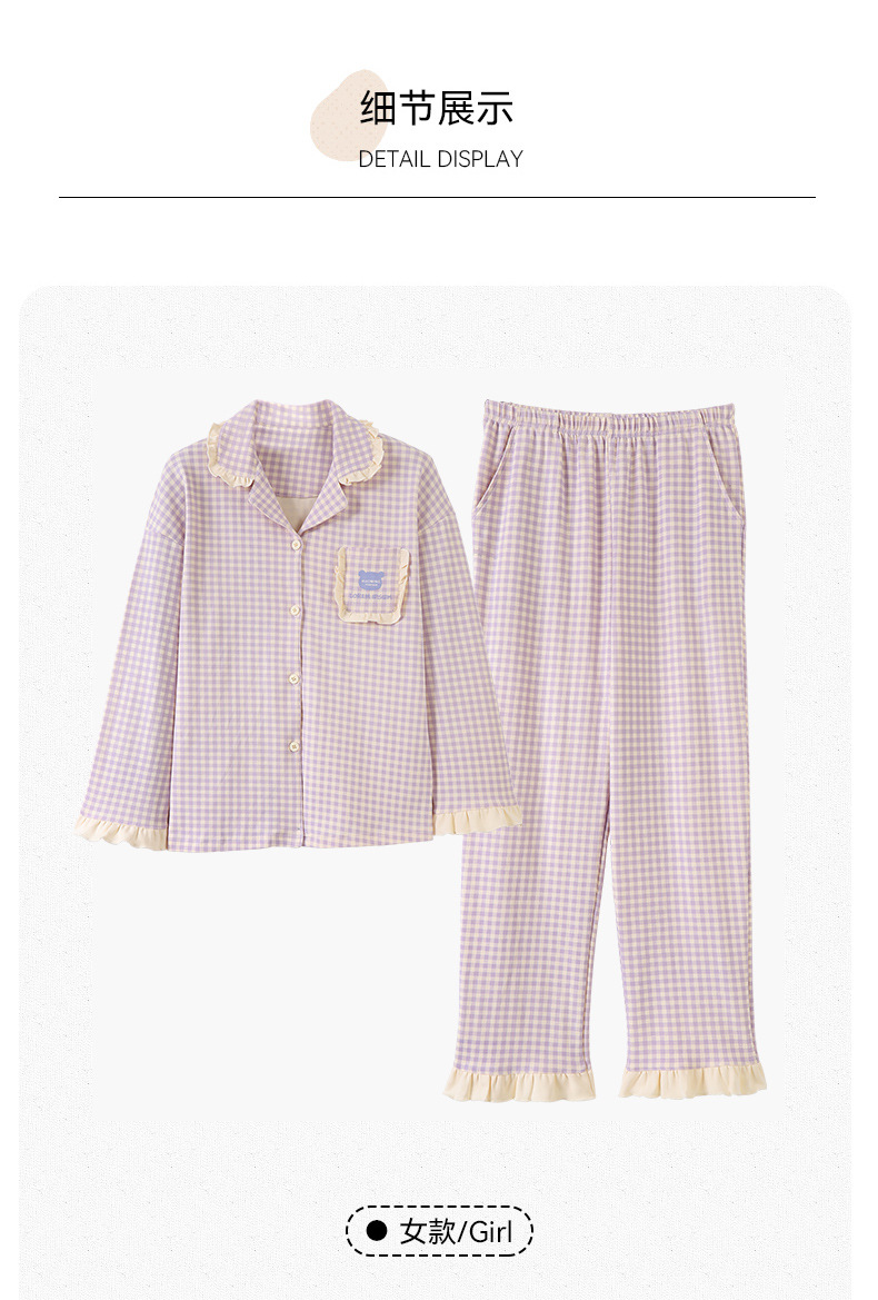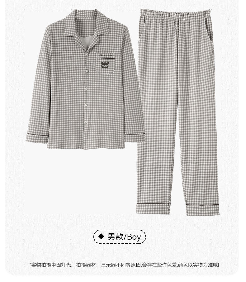순수한 면화 커플 잠옷 여성의 봄과 가을 달콤한 귀여운 세트 캐주얼 카디건 긴 소매 남성용 겉옷