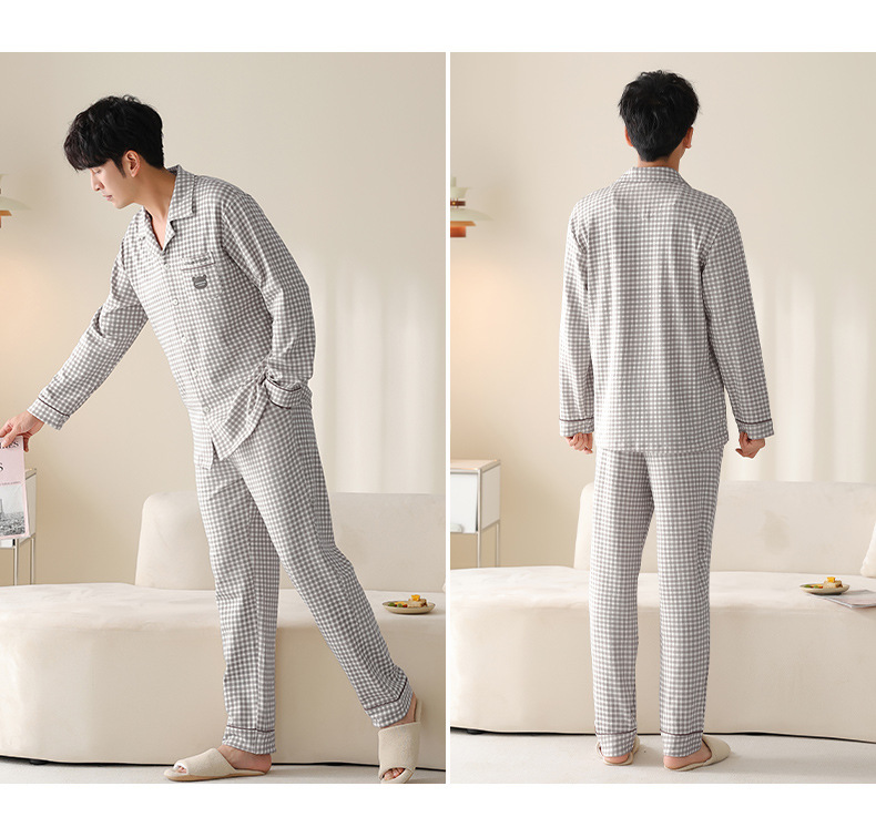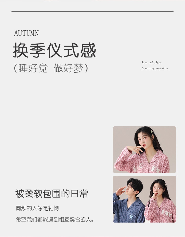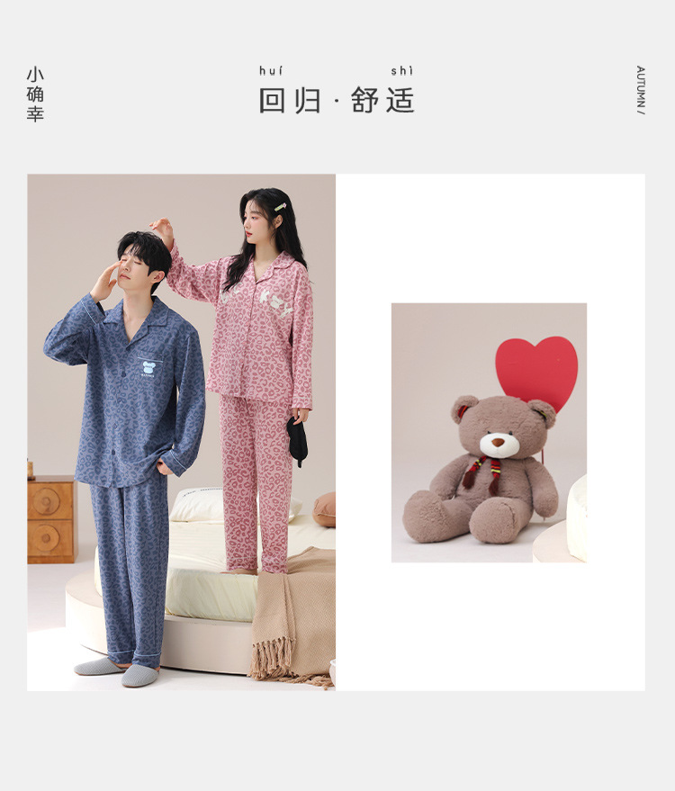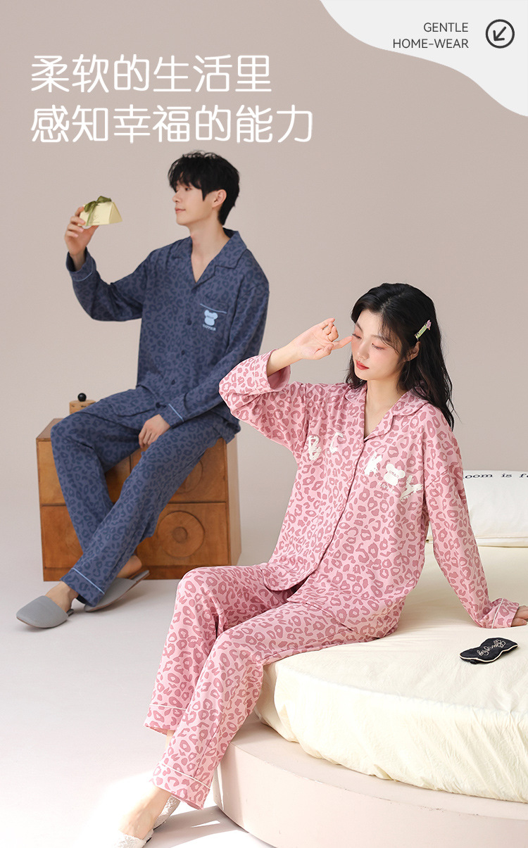 순수한 면화 커플 잠옷 여성의 봄과 가을 달콤한 귀여운 세트 캐주얼 카디건 긴 소매 남성용 겉옷스토어 가기