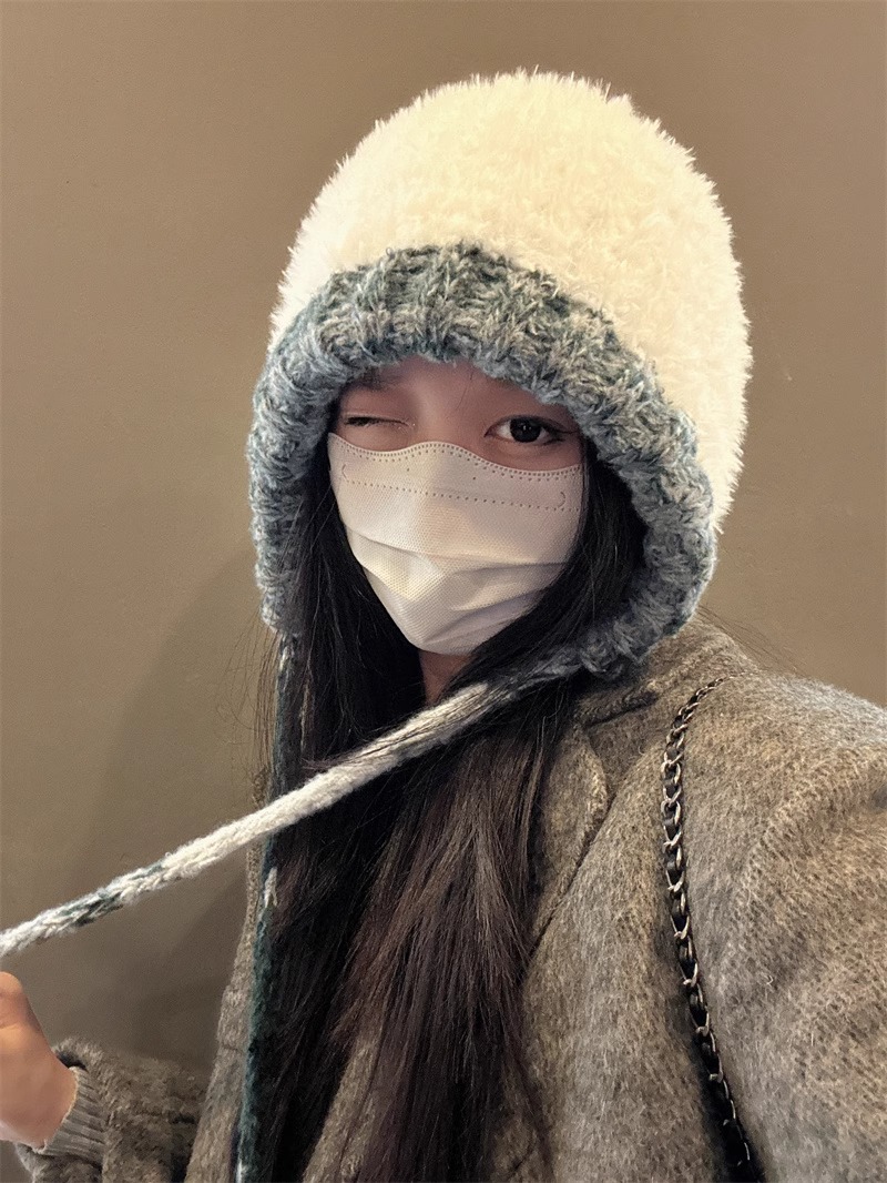 겨울 따뜻한 얼굴 작은 봉제 니트 모자 여성 한국식 올매치 귀 보호 귀여운 긴 머리 마오 레이 펑 모자
