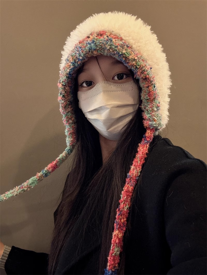겨울 따뜻한 얼굴 작은 봉제 니트 모자 여성 한국식 올매치 귀 보호 귀여운 긴 머리 마오 레이 펑 모자스토어 가기