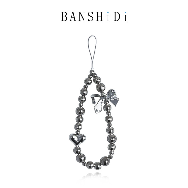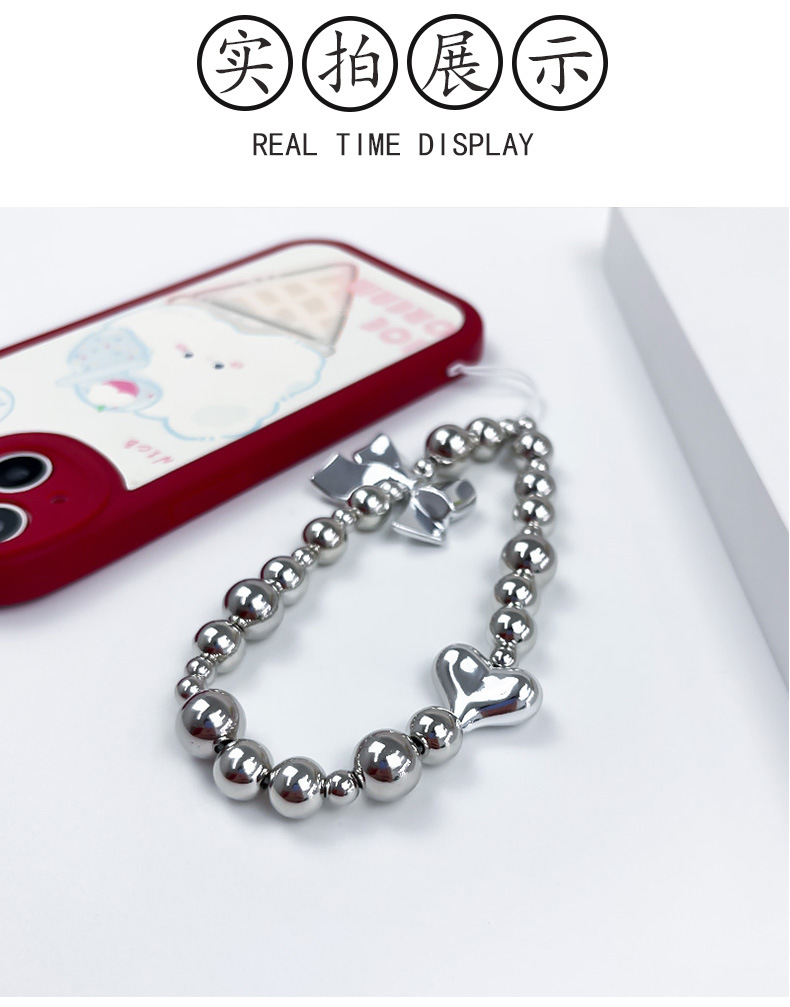 Ins 고급 센스 디자인 실버 구슬 끈 펜던트 휴대 전화 케이스 체인 DIY 수제 보우 백 체인스토어 가기