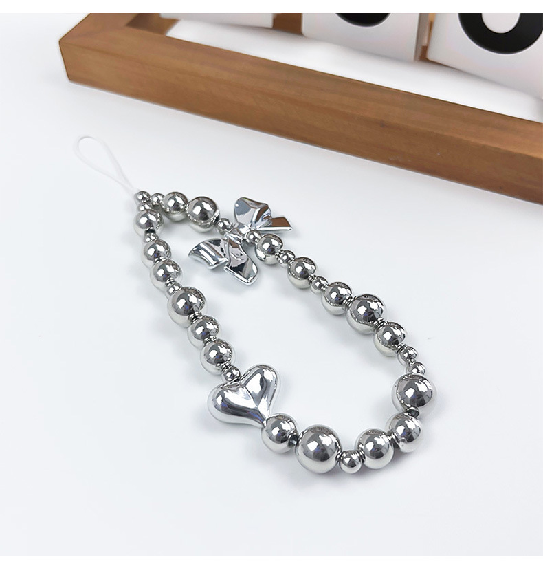 Ins 고급 센스 디자인 실버 구슬 끈 펜던트 휴대 전화 케이스 체인 DIY 수제 보우 백 체인