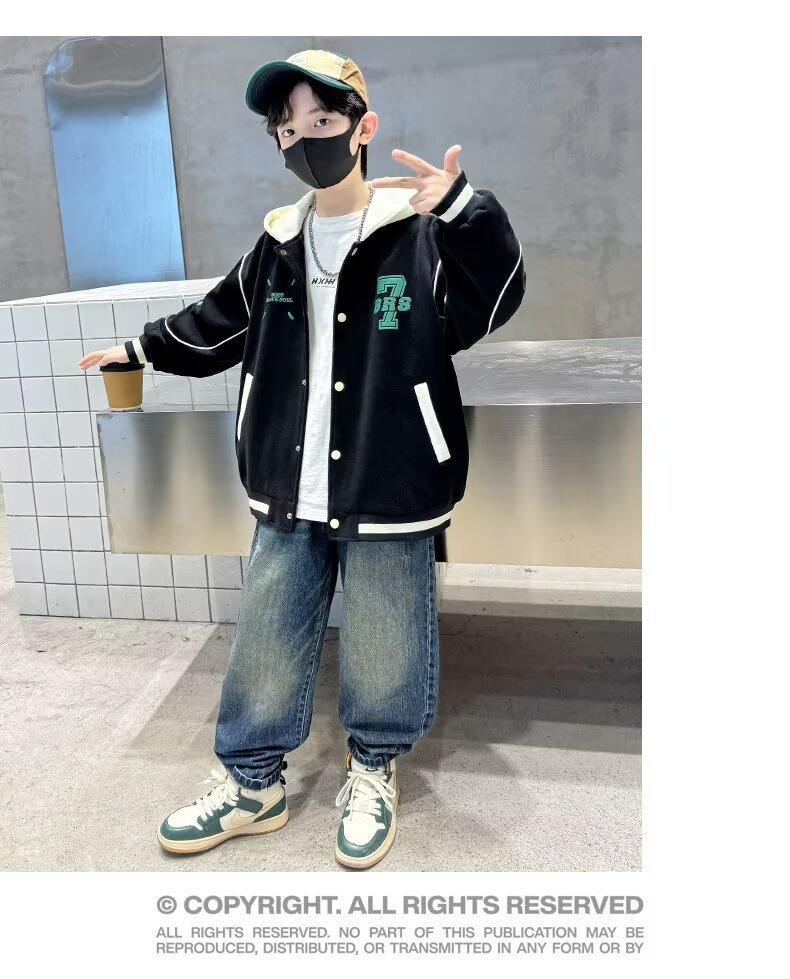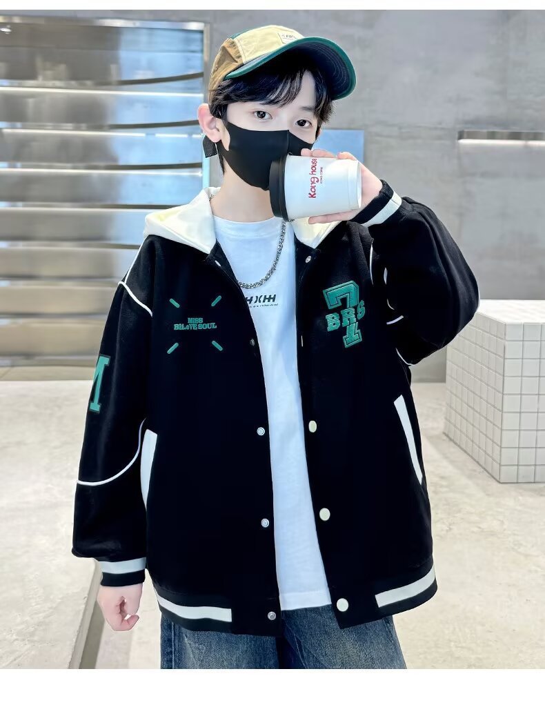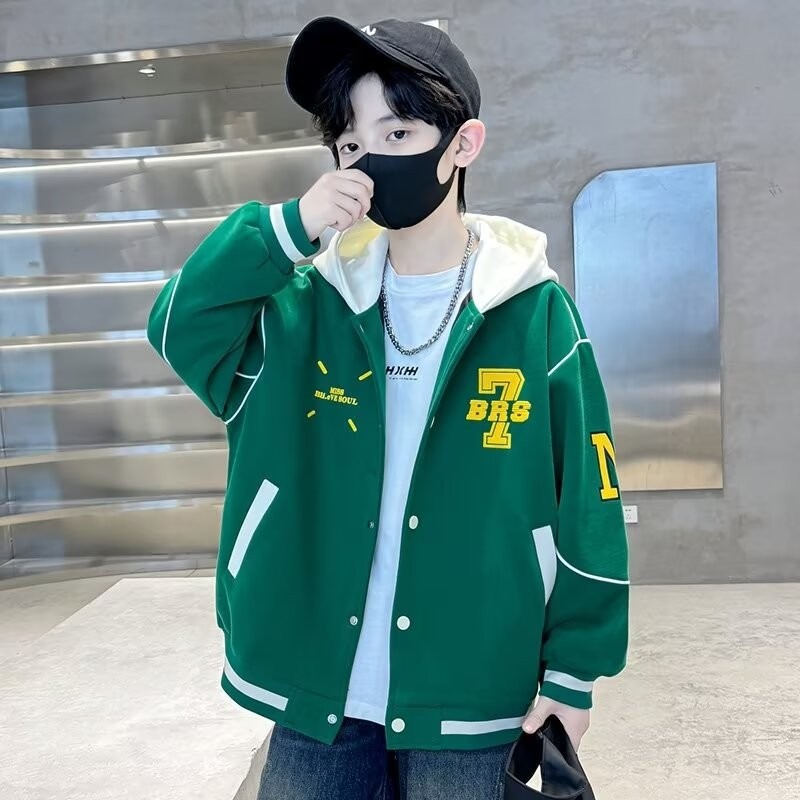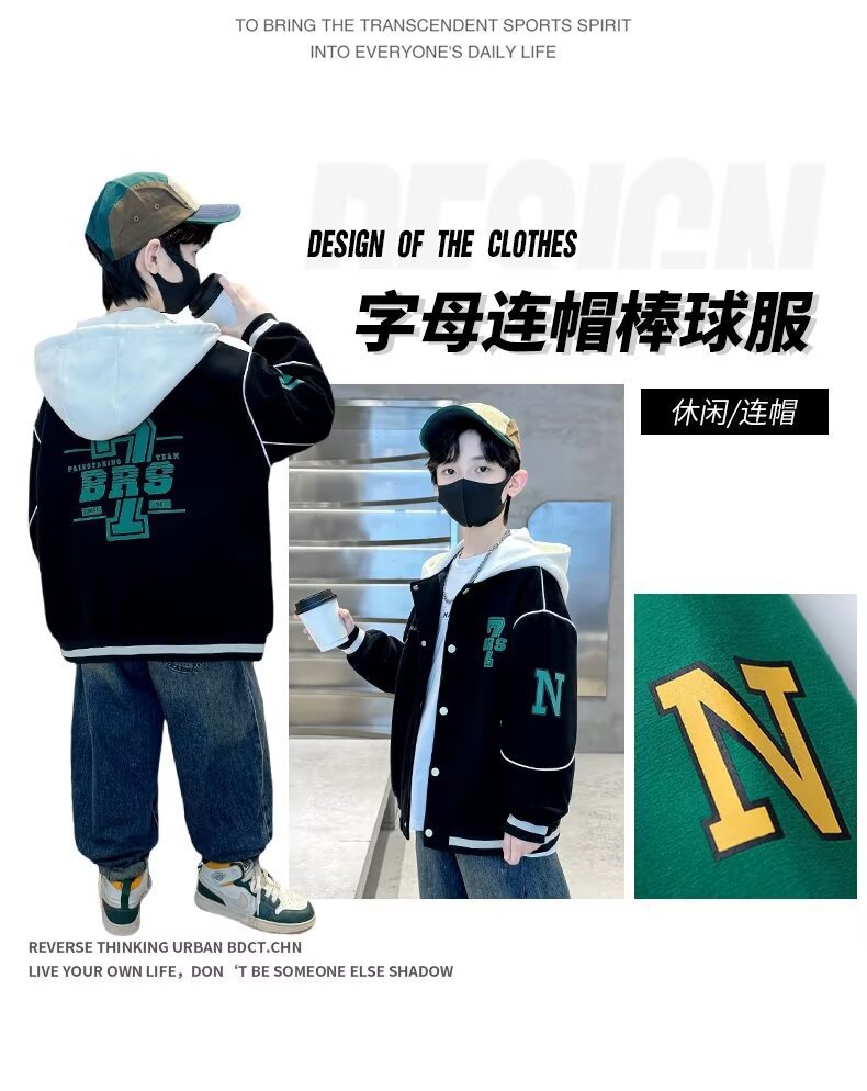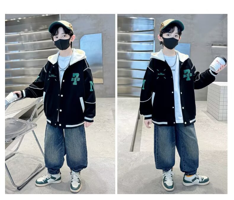 소년 야구 세트 2024 년 봄과 가을 새로운 스타일 중다 어린이 튀긴 거리 쿨 핸섬 후드 어린이 가을 옷 인터넷 인기 재킷 트렌디스토어 가기