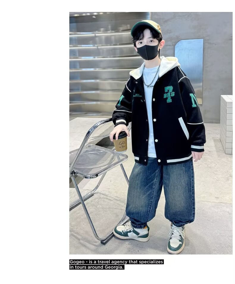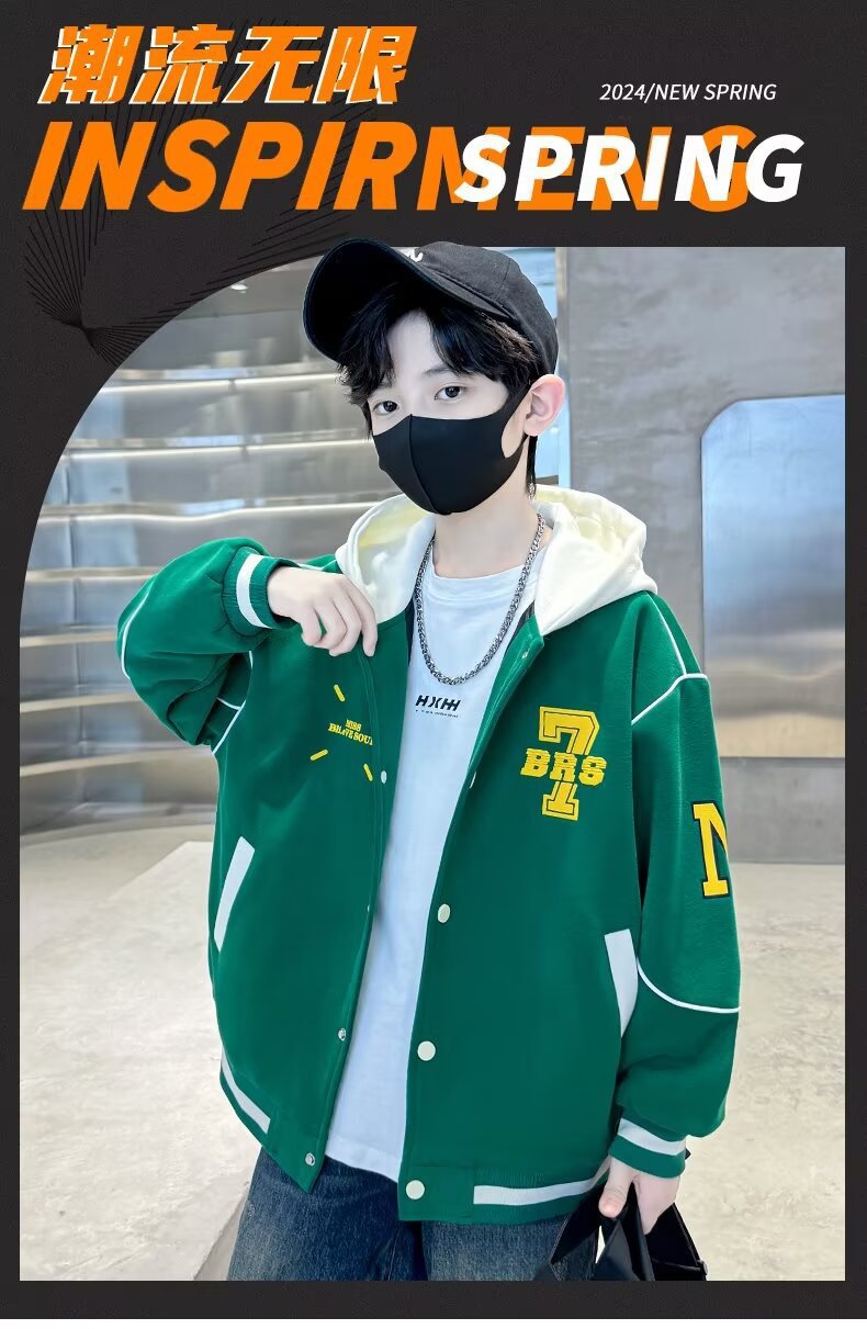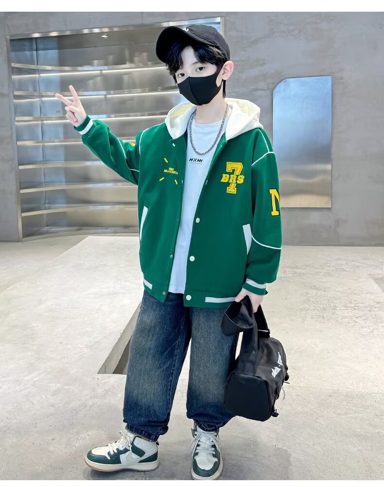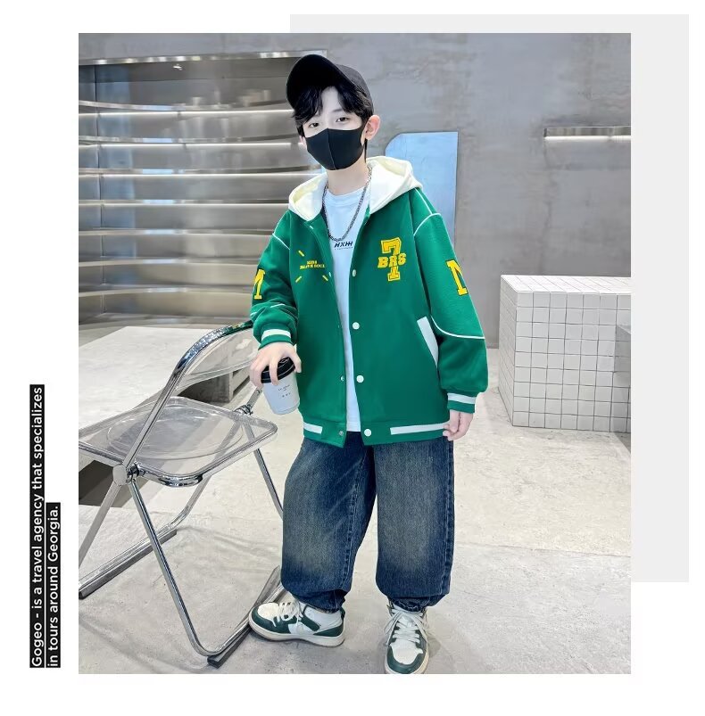 소년 야구 세트 2024 년 봄과 가을 새로운 스타일 중다 어린이 튀긴 거리 쿨 핸섬 후드 어린이 가을 옷 인터넷 인기 재킷 트렌디스토어 가기