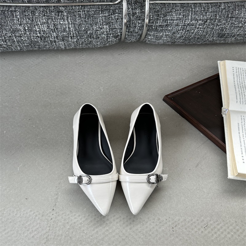 뾰족한 벨트 버클 신발 2024 봄 한국 스타일 새로운 얕은 편평한 굽이 달린 여성용 패셔너블 메리 제인 신발스토어 가기