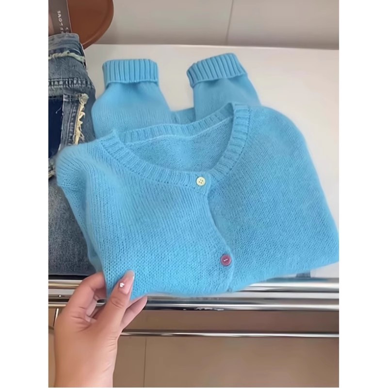 블루 너구리 벨벳 스웨터 여성 2024 가을 겨울 새로운 소프트 왁스 슬리밍 게으른 한국 니트 카디건 느슨한 재킷