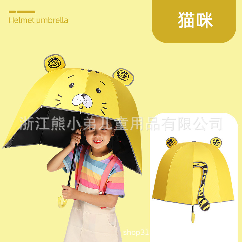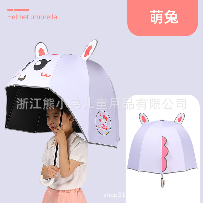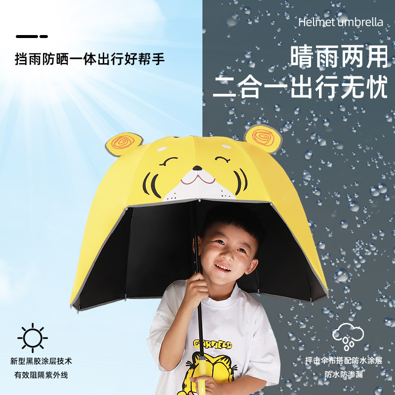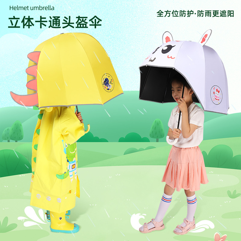어린이 모자 우산 태양 보호 자외선 보호 맑은 비 이중 사용 양산 우산 여성 유치원 아기 만화 헬멧 우산