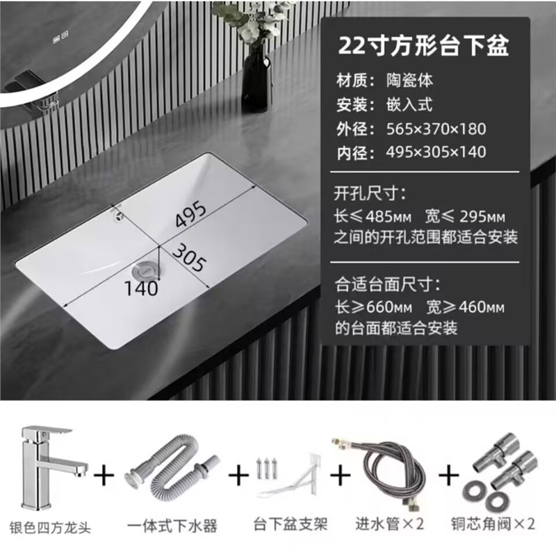 • 22inch 정사각형 단일 세면대 + 배수 패키지