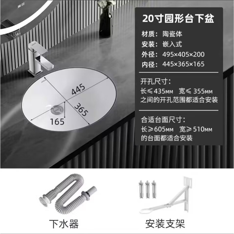 • 20inch 타원형 단일 세면대 + 배수 패키지