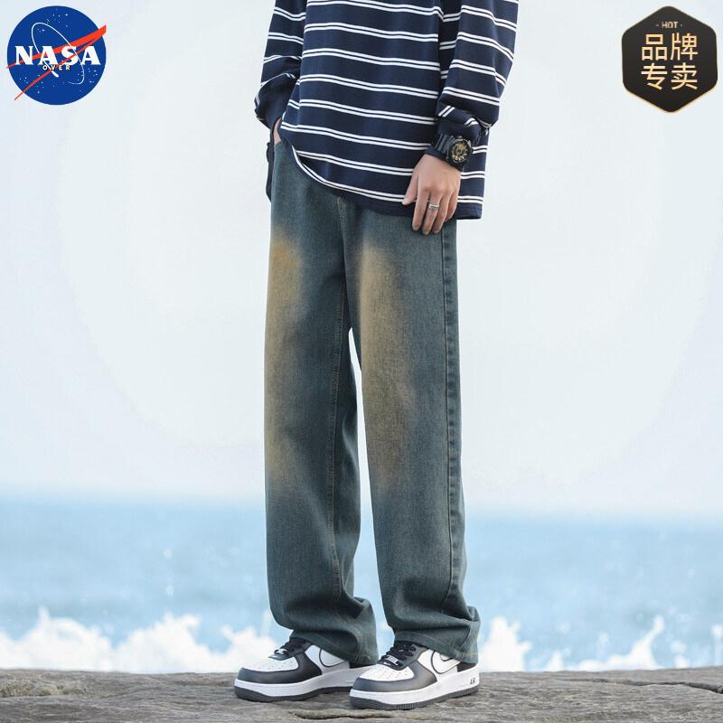 NASAOVER 남성용 청바지 가을 겨울 아메리칸 캐주얼 팬츠 봄 가을 레트로 트렌디 브랜드 긴바지 빈티지 워싱