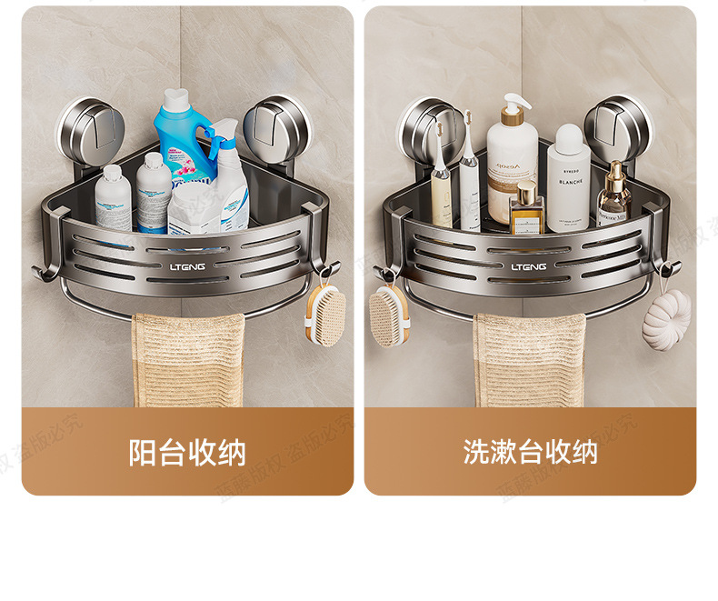 욕실 빨판 삼각형 바구니 보관 랙 화장실 세면대 코너 구멍이없는 벽걸이 형 화장실 보관 랙