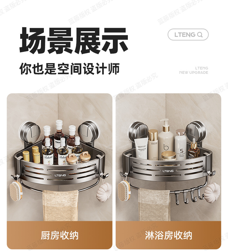 욕실 빨판 삼각형 바구니 보관 랙 화장실 세면대 코너 구멍이없는 벽걸이 형 화장실 보관 랙스토어 가기
