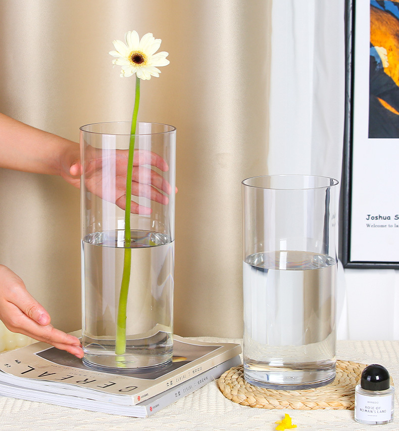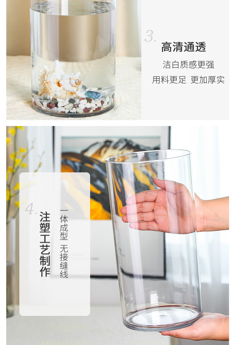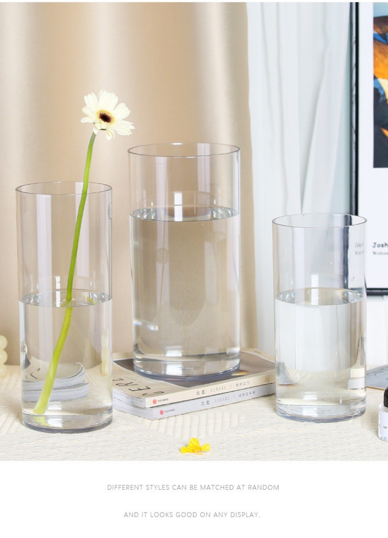 아크릴 작은 꽃병 꽃 투명 스트레이트 드라이 플라워 장미 백합 수경 식물 플라스틱 꽃병 장식품스토어 가기