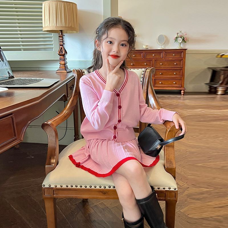 여자 세트 2024 캐주얼 새 한국 대학 스타일 니트 스웨터 여성 JK 유니폼 주름 치마 투피스 세트